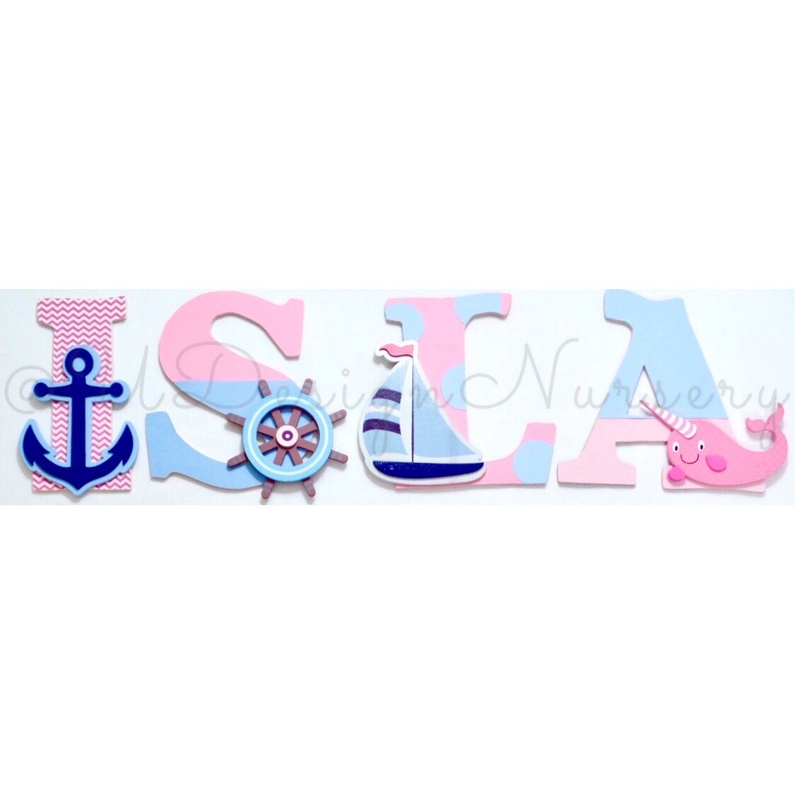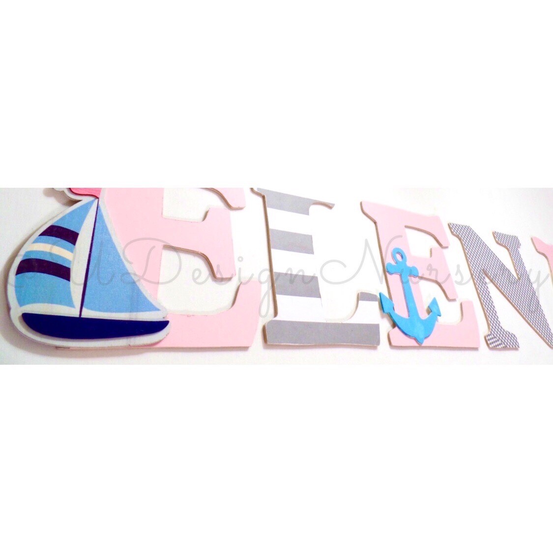 как выглядит Girls Nautical Themed Wooden Nursery Letters - Custom Sailing Themed Kids Room фото