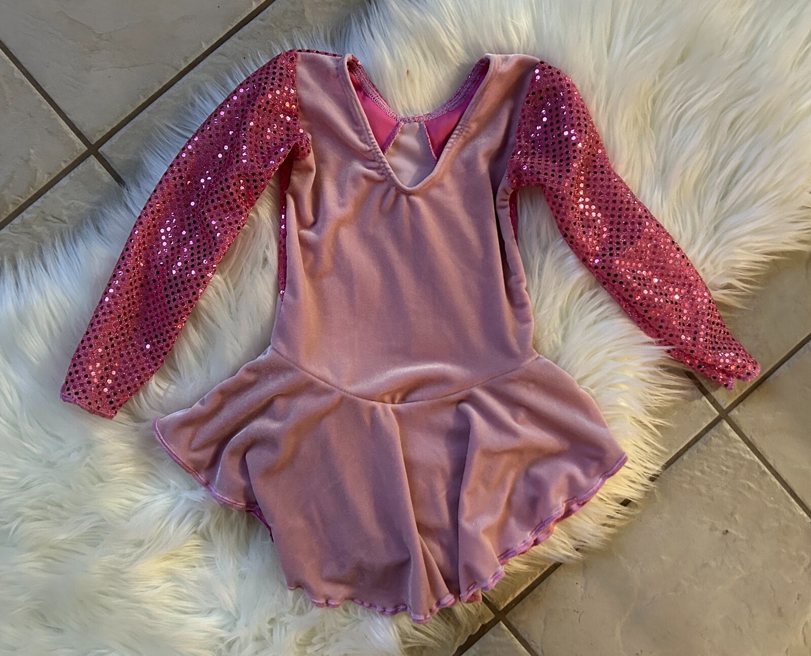 NEW Girls SEQUIN Mauve Pink VELVET CONFETTI Competition FIGURE ICE SKATING Dress