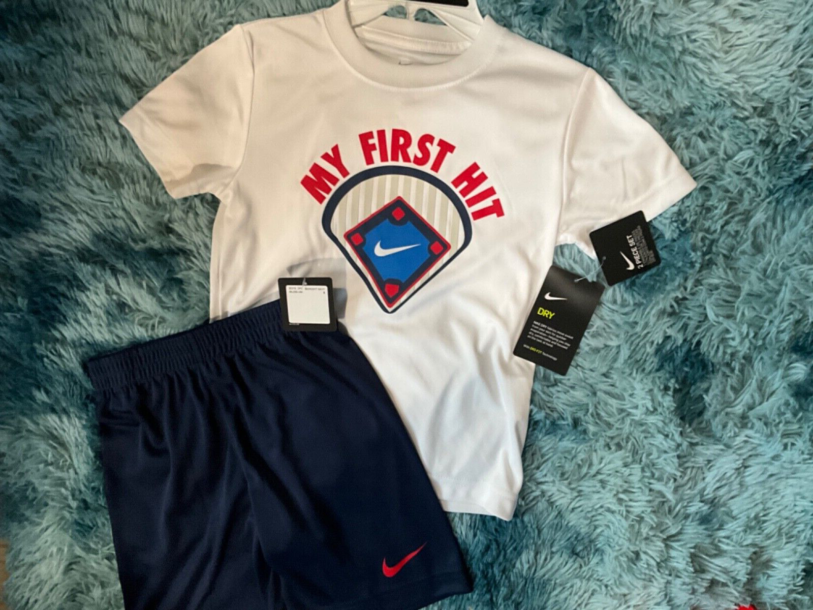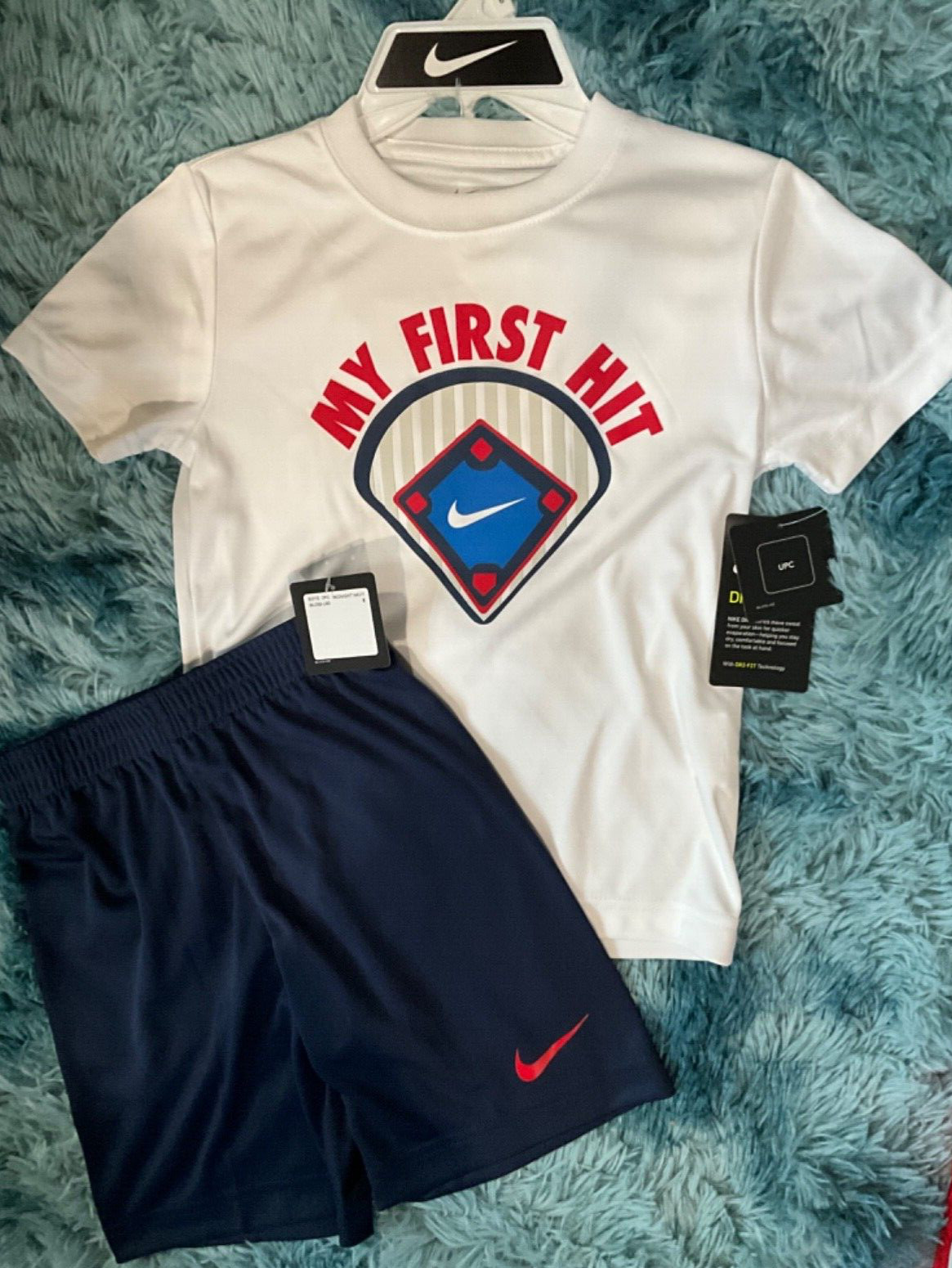 New Boy's Blue White Nike 2 pc shorts set Size 6