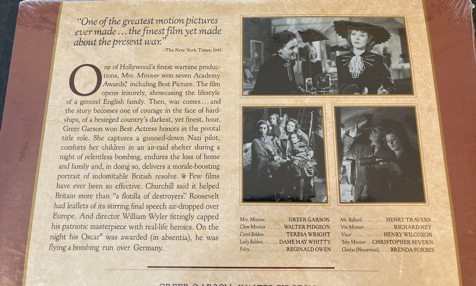 MRS. MINIVER 2 Disc Laserdisc, 1991 - Best Picture 1942 Greer Garson - NEW