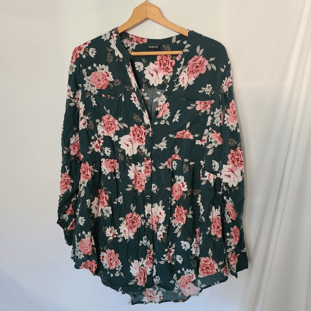 Torrid Emma Dark Teal Floral Challis Babydoll Tunic sz 2x