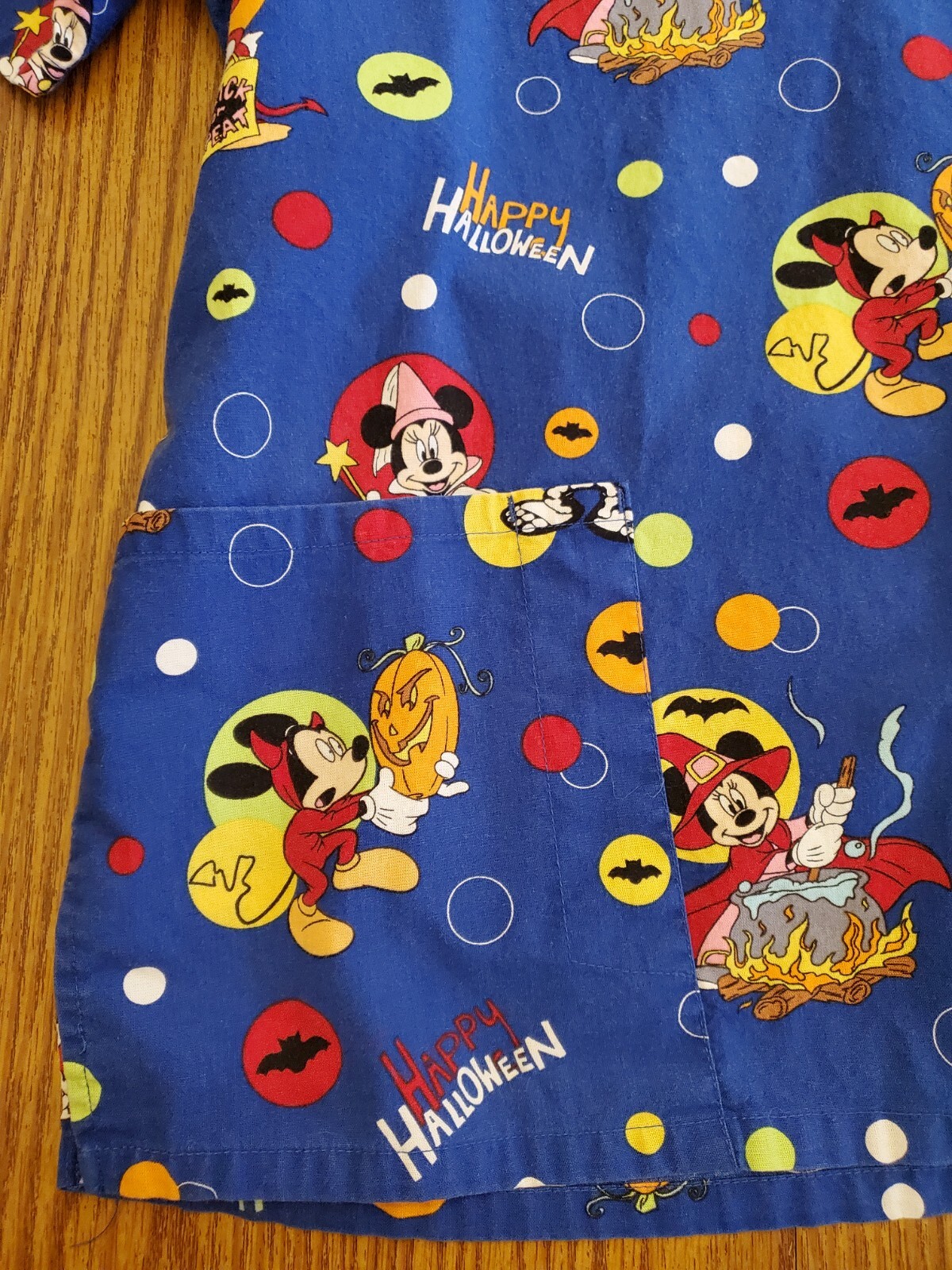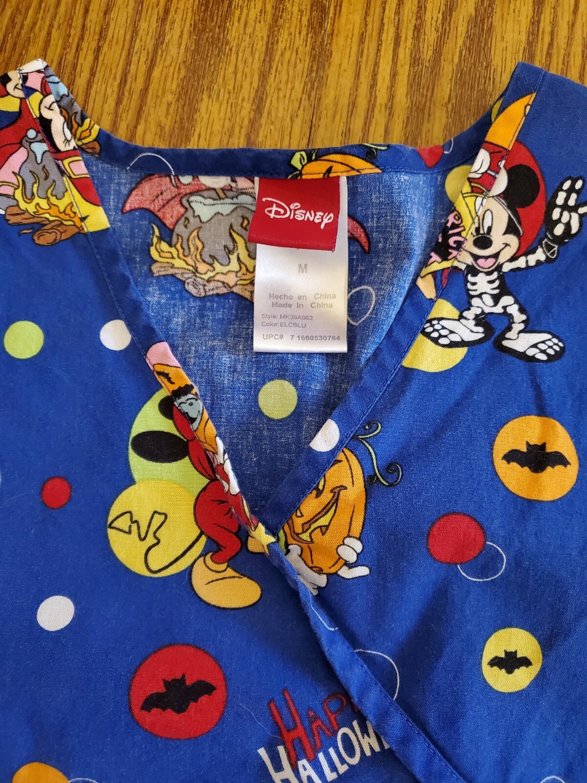 как выглядит Disney Halloween Scrub Top Medium EUC Blue With Mickey/Donald/Minnie фото
