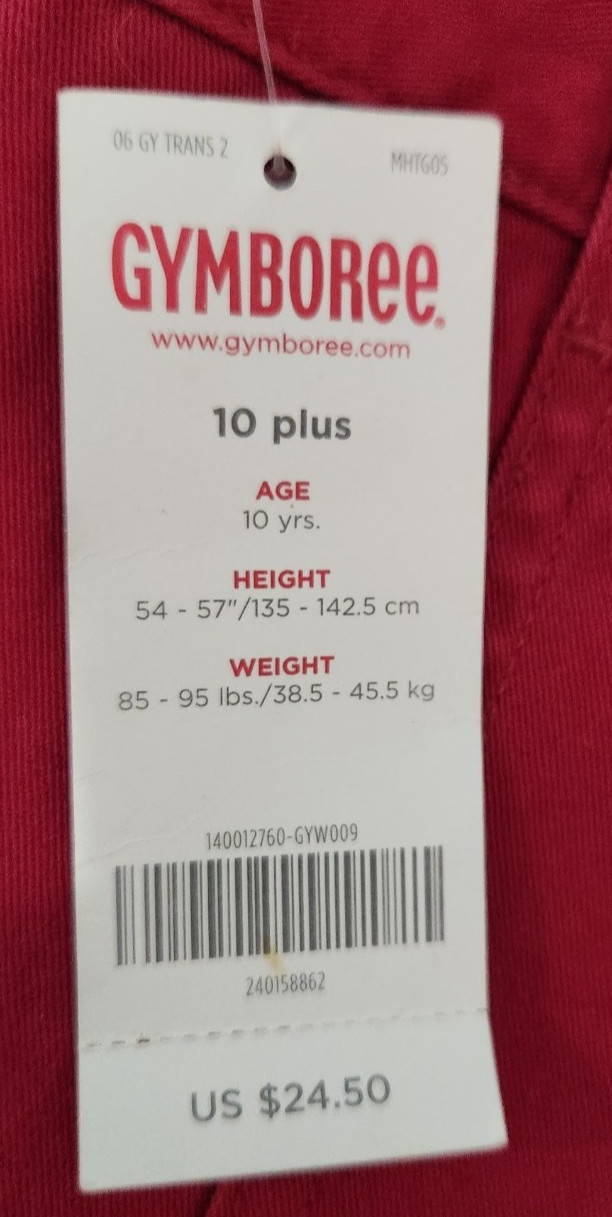 Brand New Red Gymboree Pants with Adjustable Waist with Cherry on Pocket LS