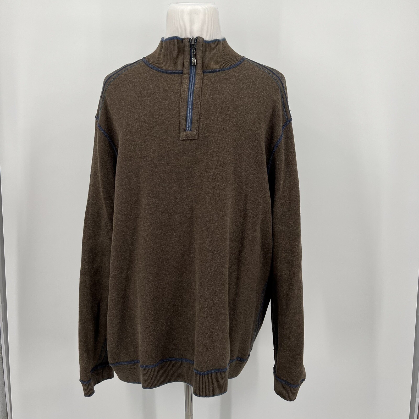 Tommy Bahama Men's Reversible Sweater Size 2XL Solid Brown Blue Pullover 1/4 Zip