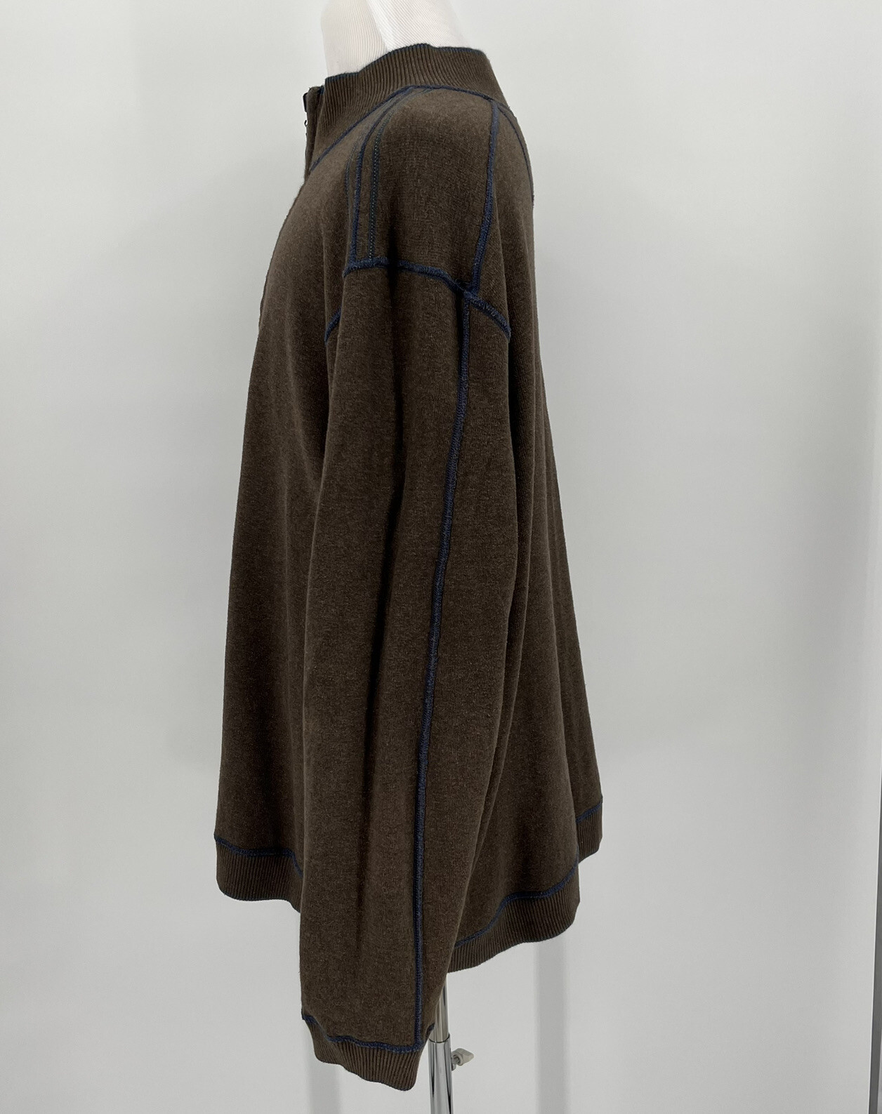 как выглядит Tommy Bahama Mens Reversible Sweater Size 2XL Solid Brown Blue Pullover 1/4 Zip фото
