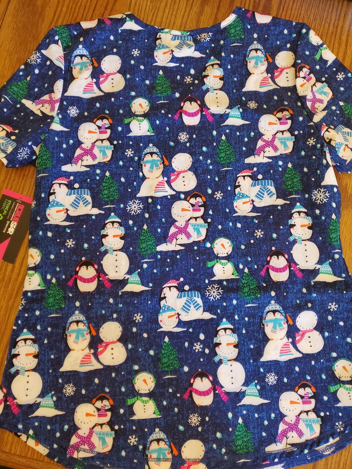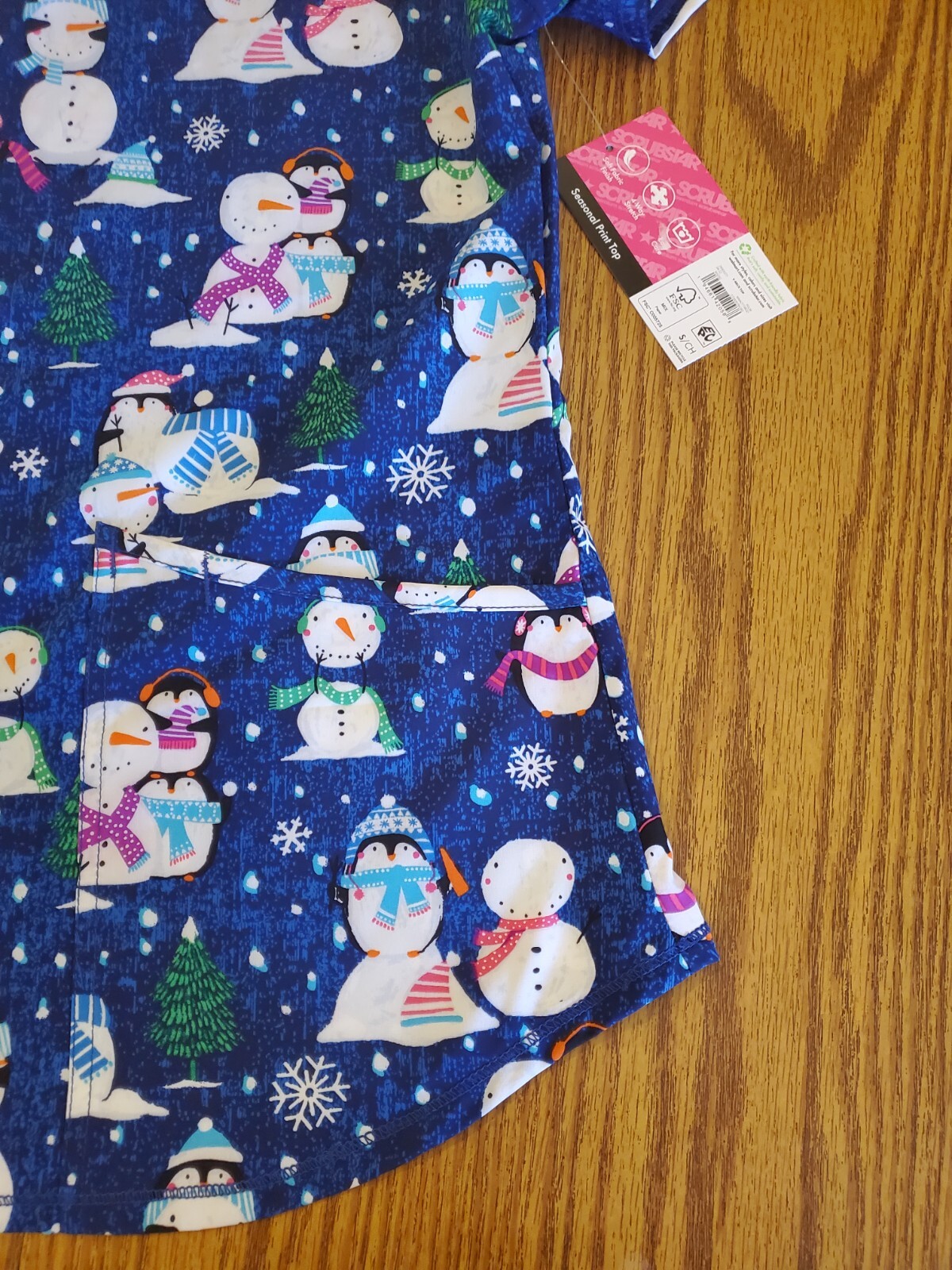Scrubstar Christmas/Winter Scrub Top Small NWT Blue