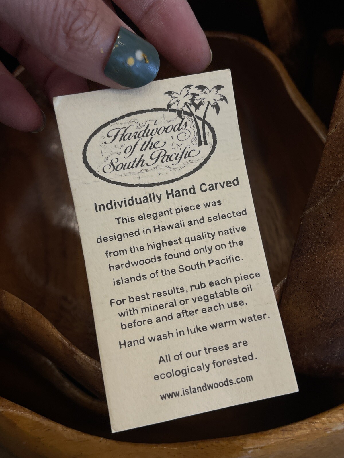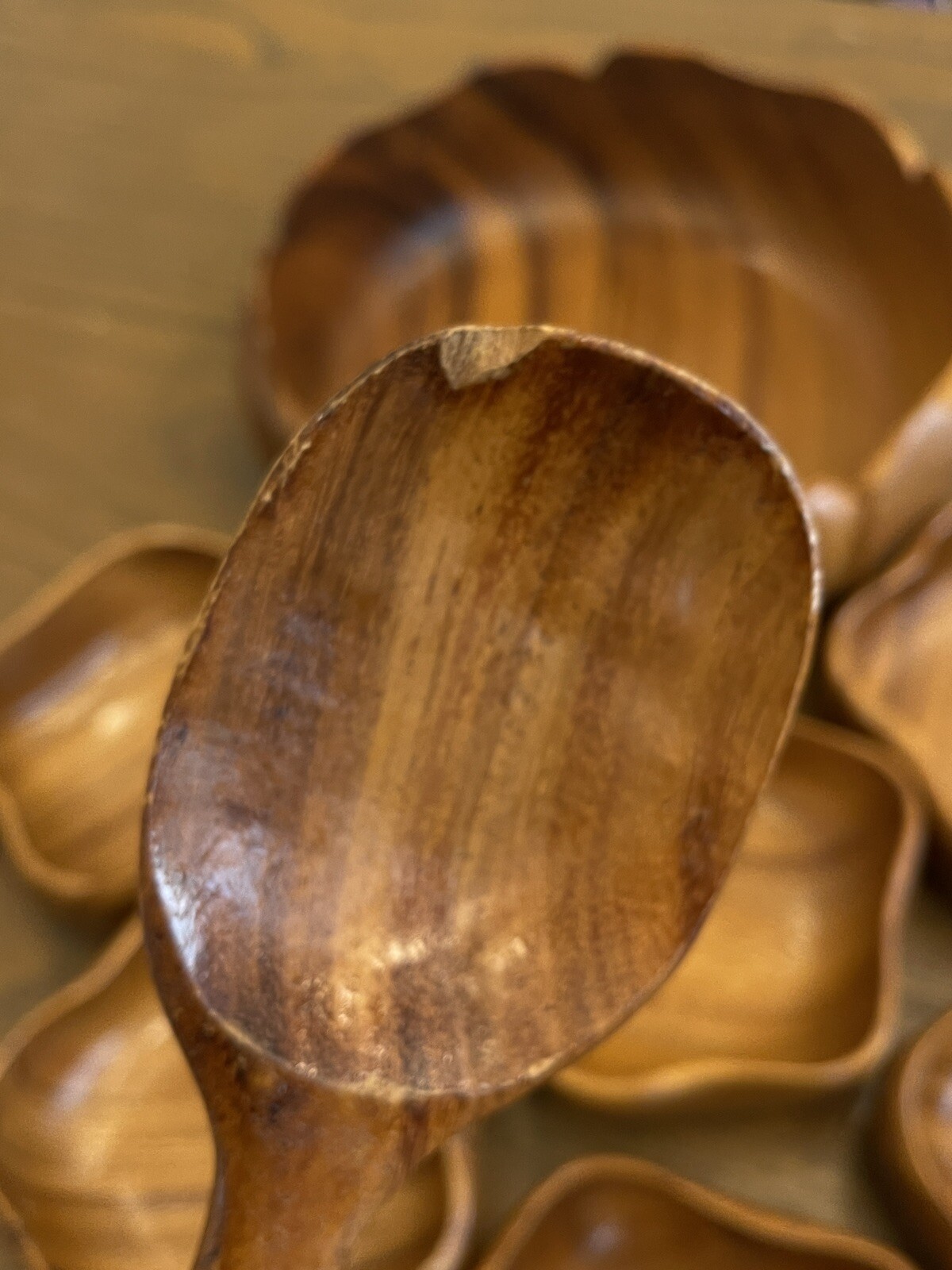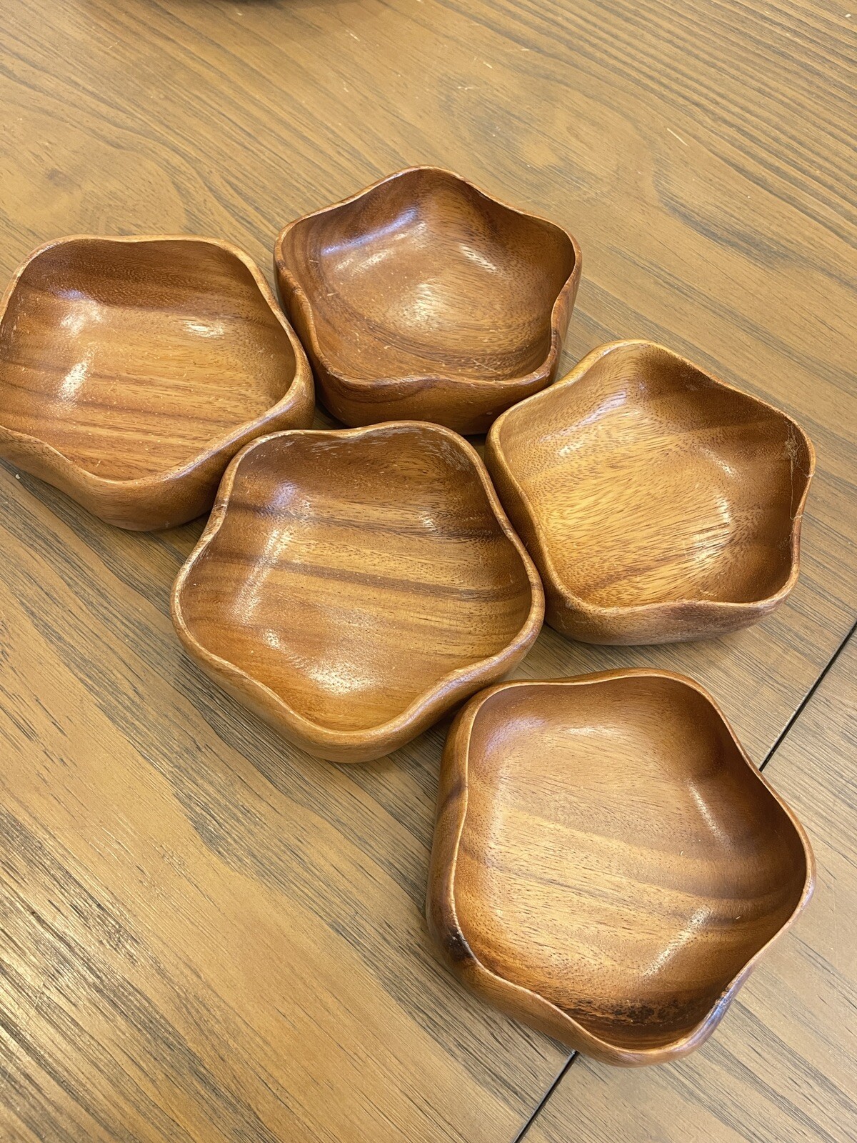 как выглядит INDIVIDUALLY HAND CARVED WOOD BOWL set signed Nine pieces фото