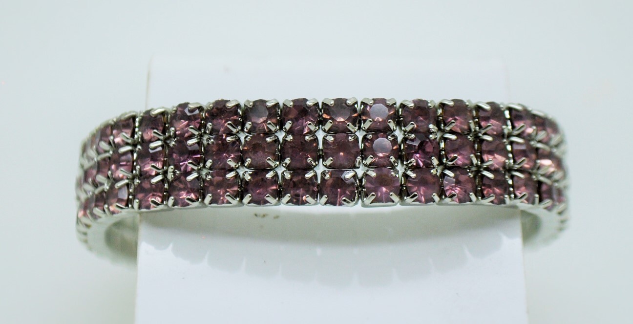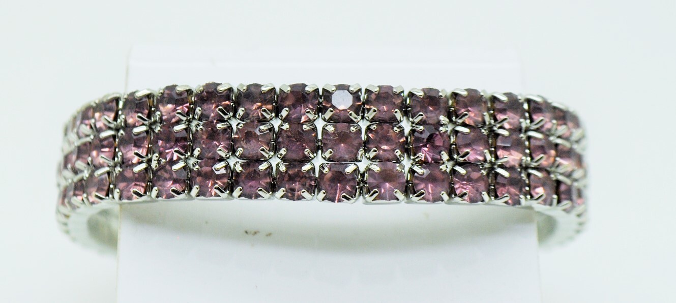 как выглядит 3 Row purple color Rhinestone rhodium plated stretch fashion Bracelet wedding фото