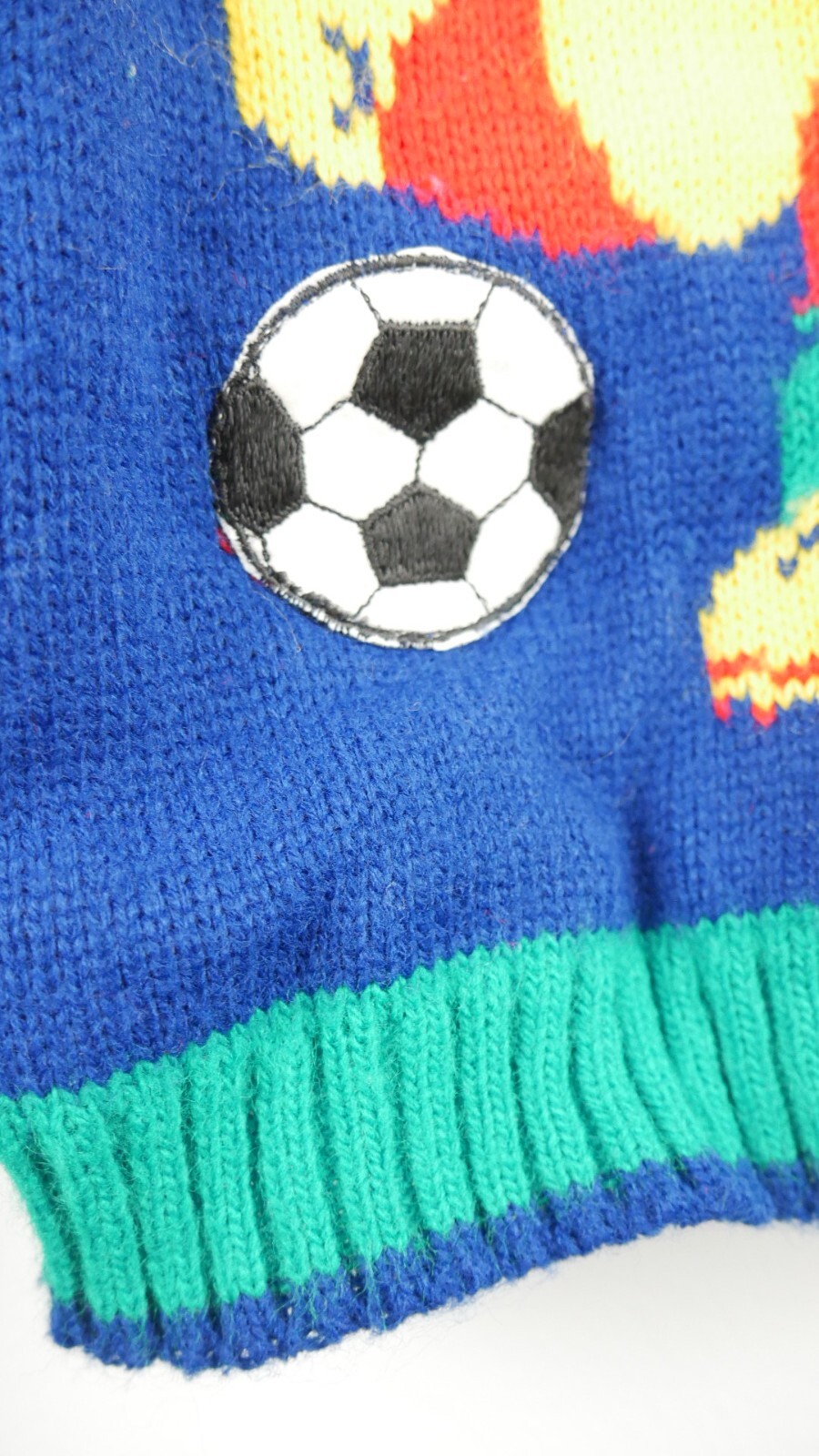 как выглядит Vintage Little Funky Dinosaur Playing Soccer Sweater Knit Green and Blue 5/6 фото