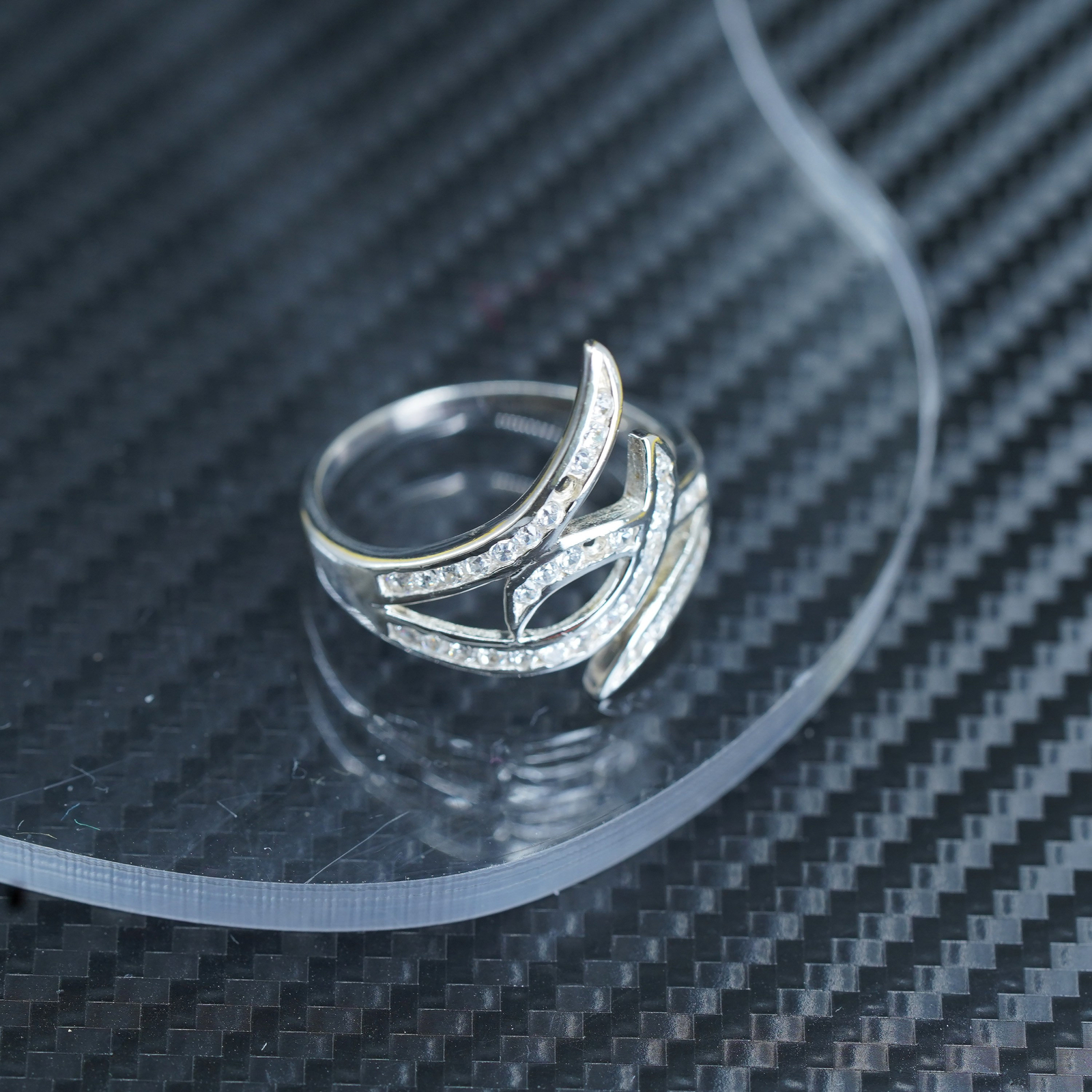Size 9, vintage sterling silver 925 band ring with cluster cz