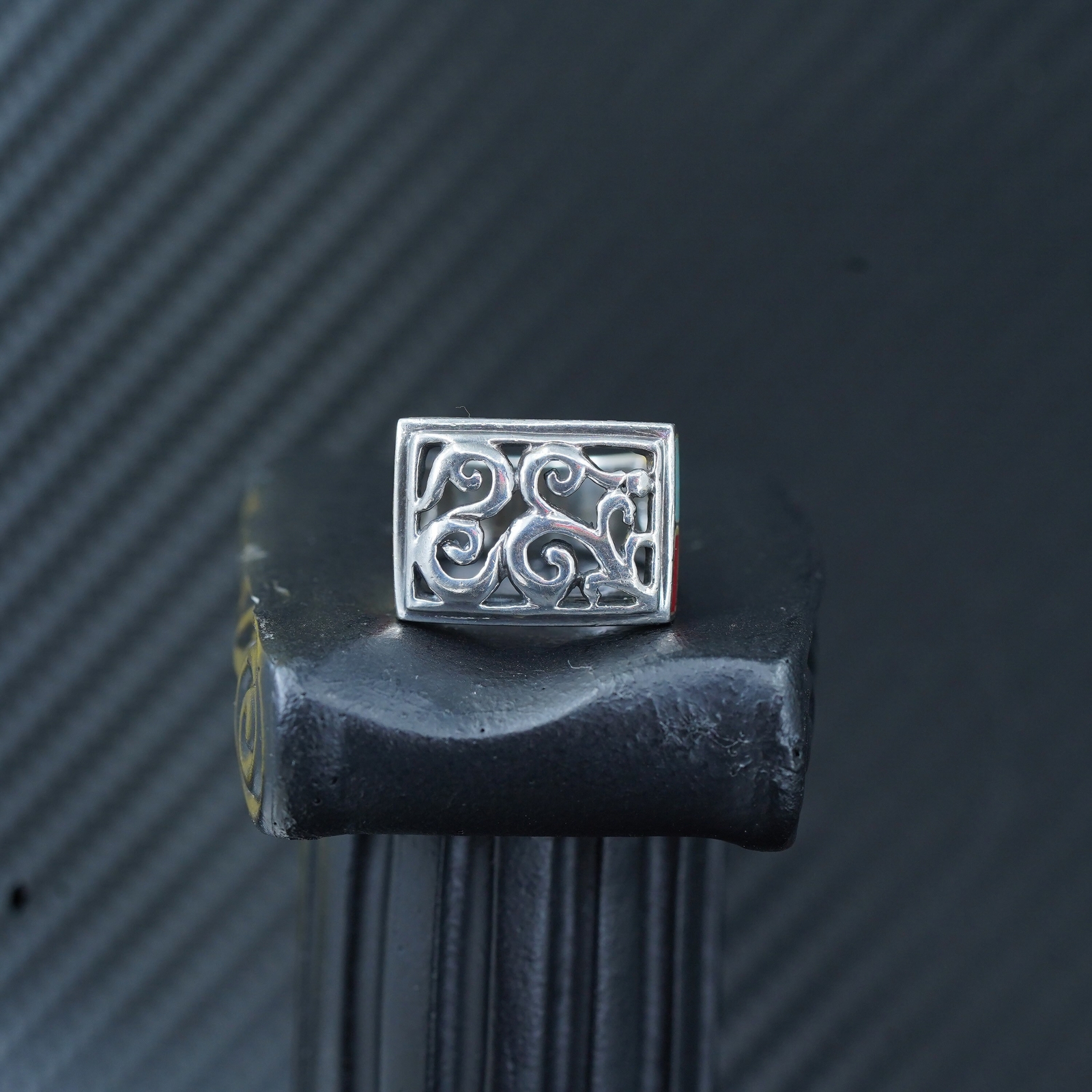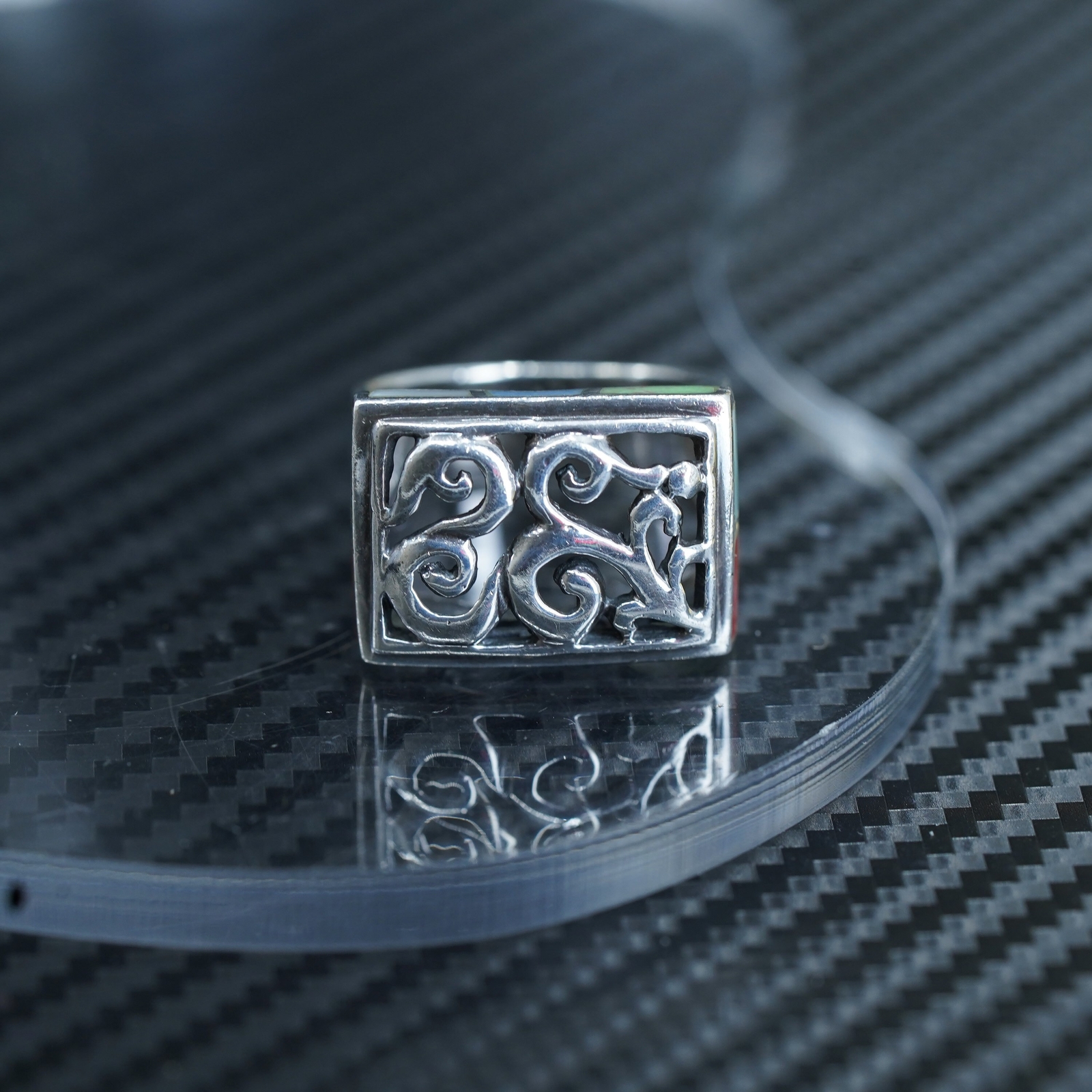 как выглядит size 6, vintage Sterling silver handmade ring, 925 filigree statement band фото