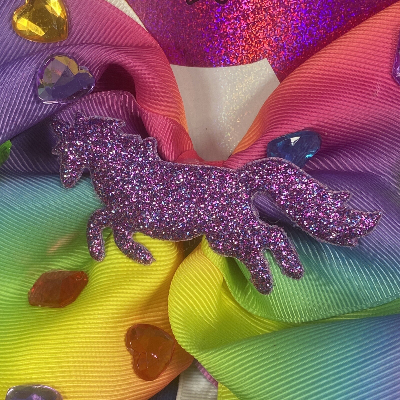 NEW Nickelodeon JoJo Siwa Large Rainbow Hair Bow with Unicorn Horn Hearts