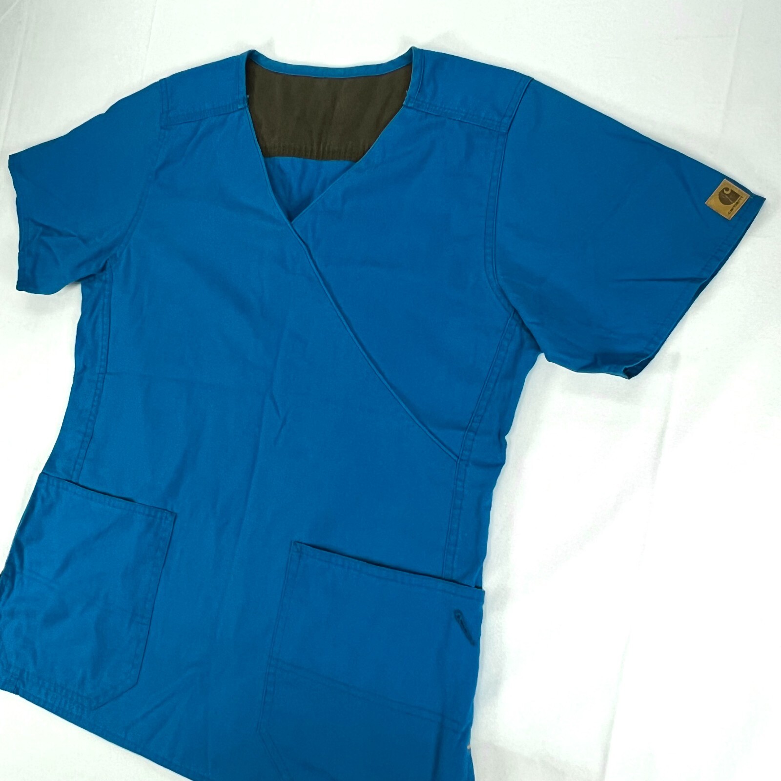 как выглядит Carhartt Scrub V-Neck Top Womens S Hand Measured Blue Short Sleeve фото