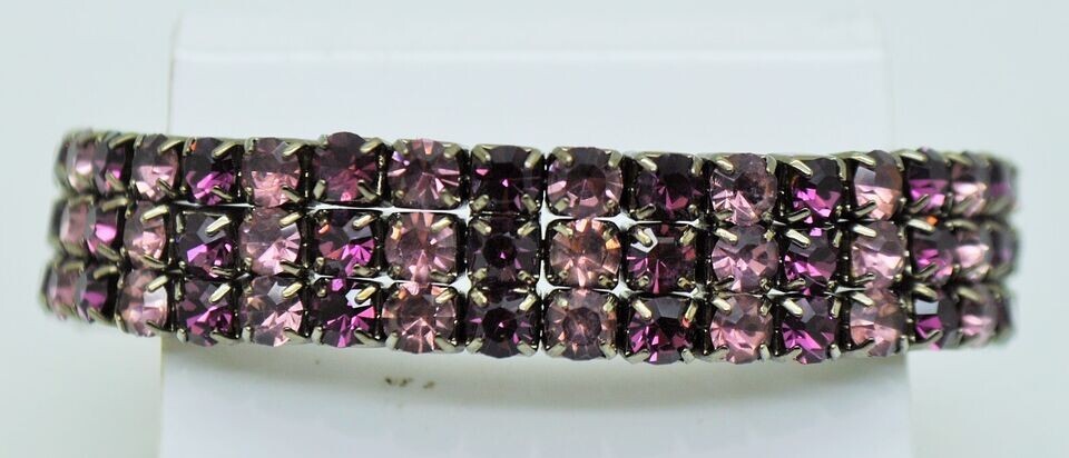 3Row purple dark multi color Rhinestone Black nickel Stretch fashion Bracelet