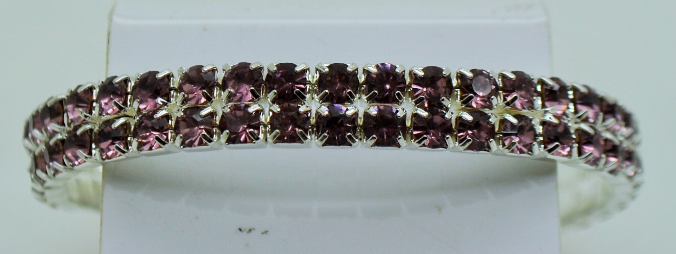 2 Row purple color Rhinestone Crystal silver Stretch elastic fashion Bracelet