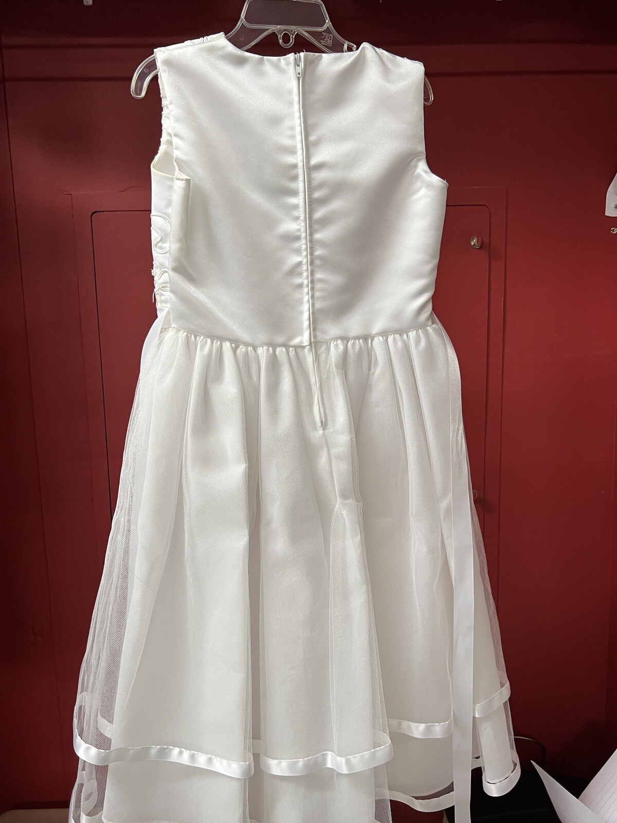как выглядит Little Girl Communion Flower Girl Dress White Embroidered Beaded Crinoline Sz 7 фото