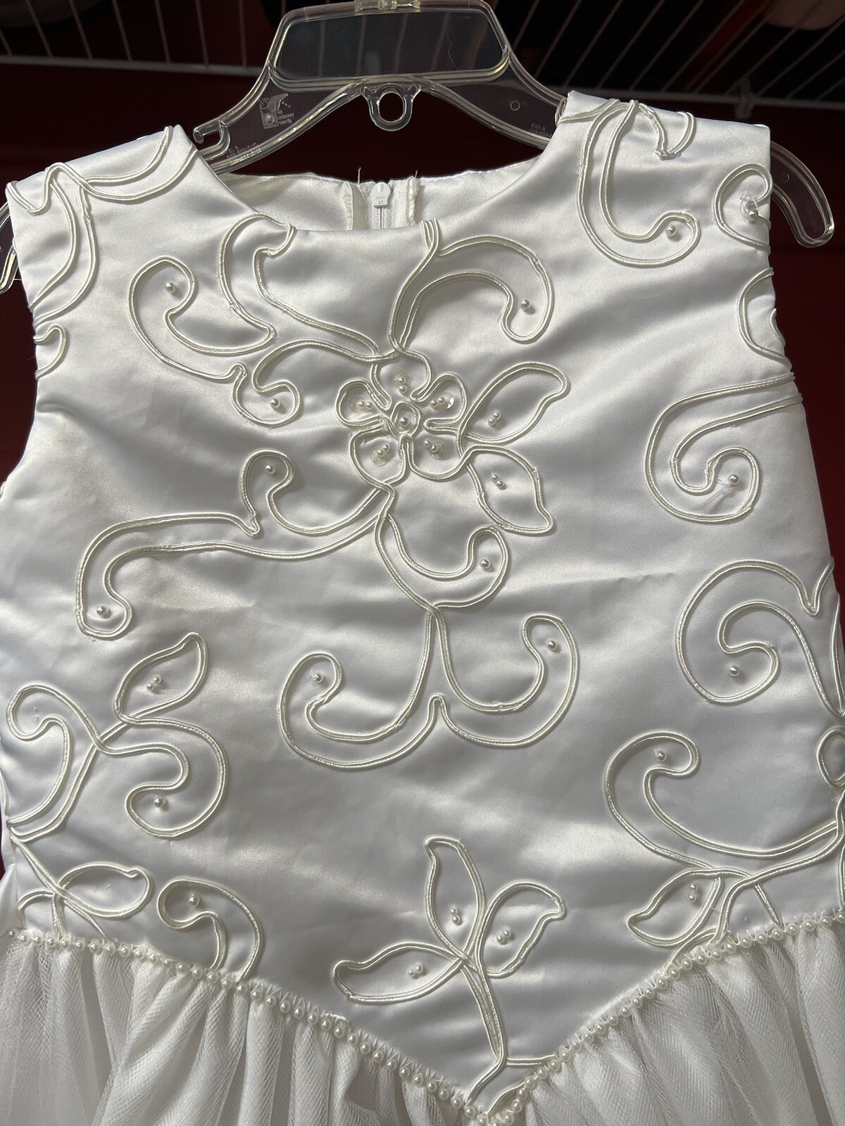 Little Girl Communion Flower Girl Dress White Embroidered Beaded Crinoline Sz 7
