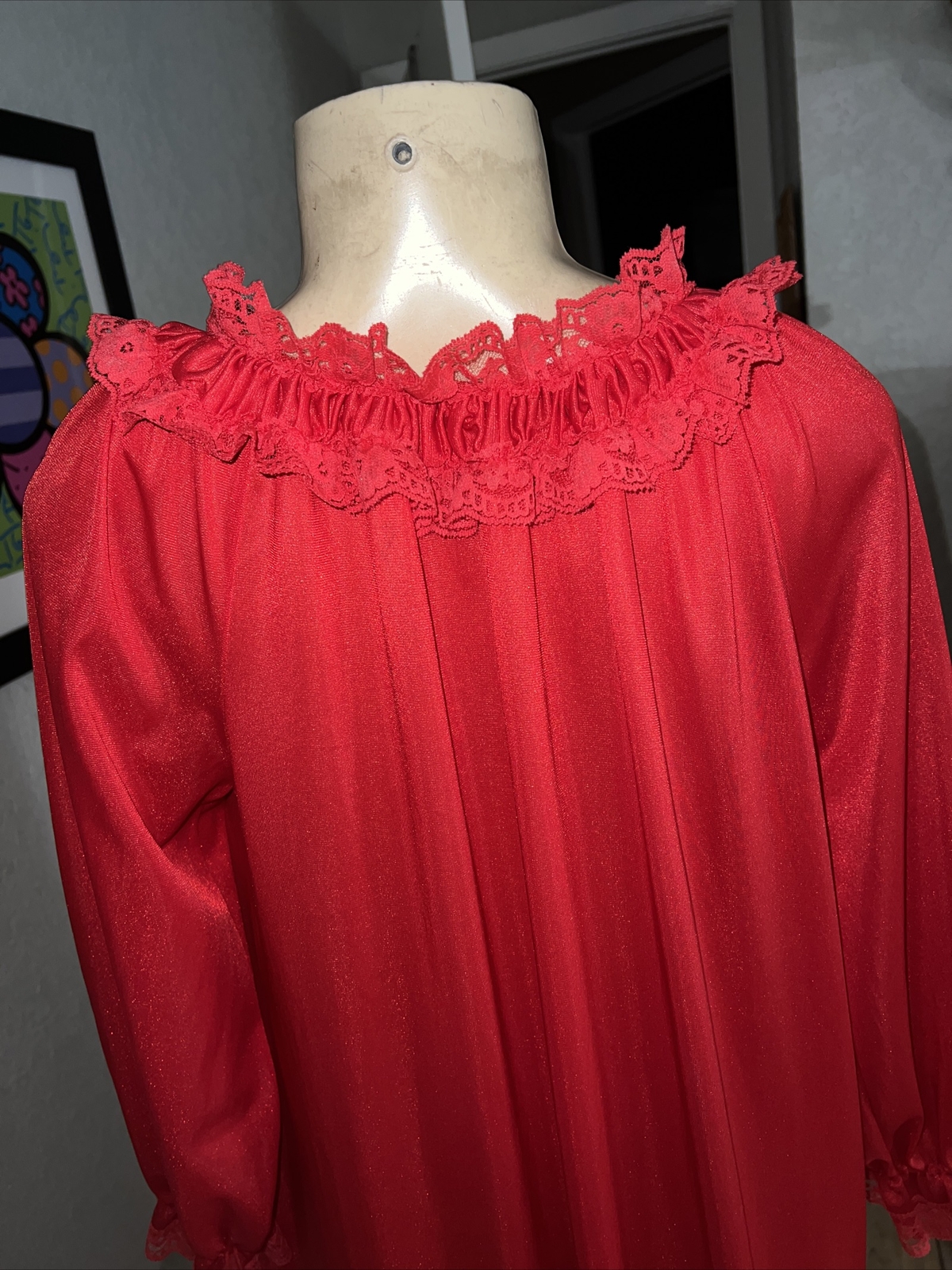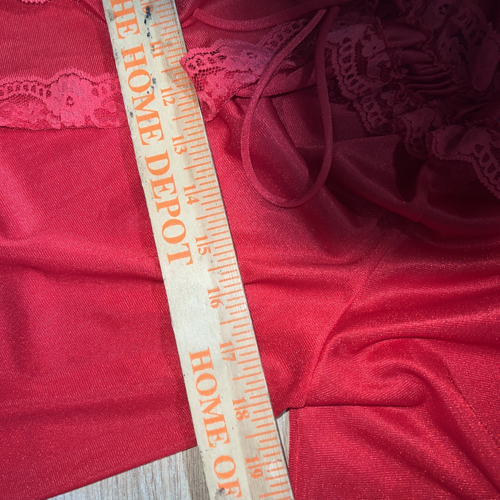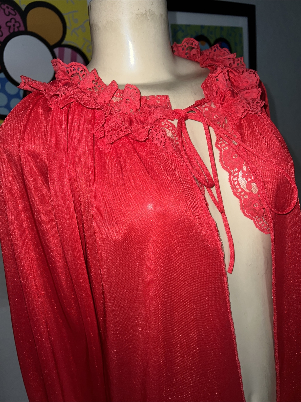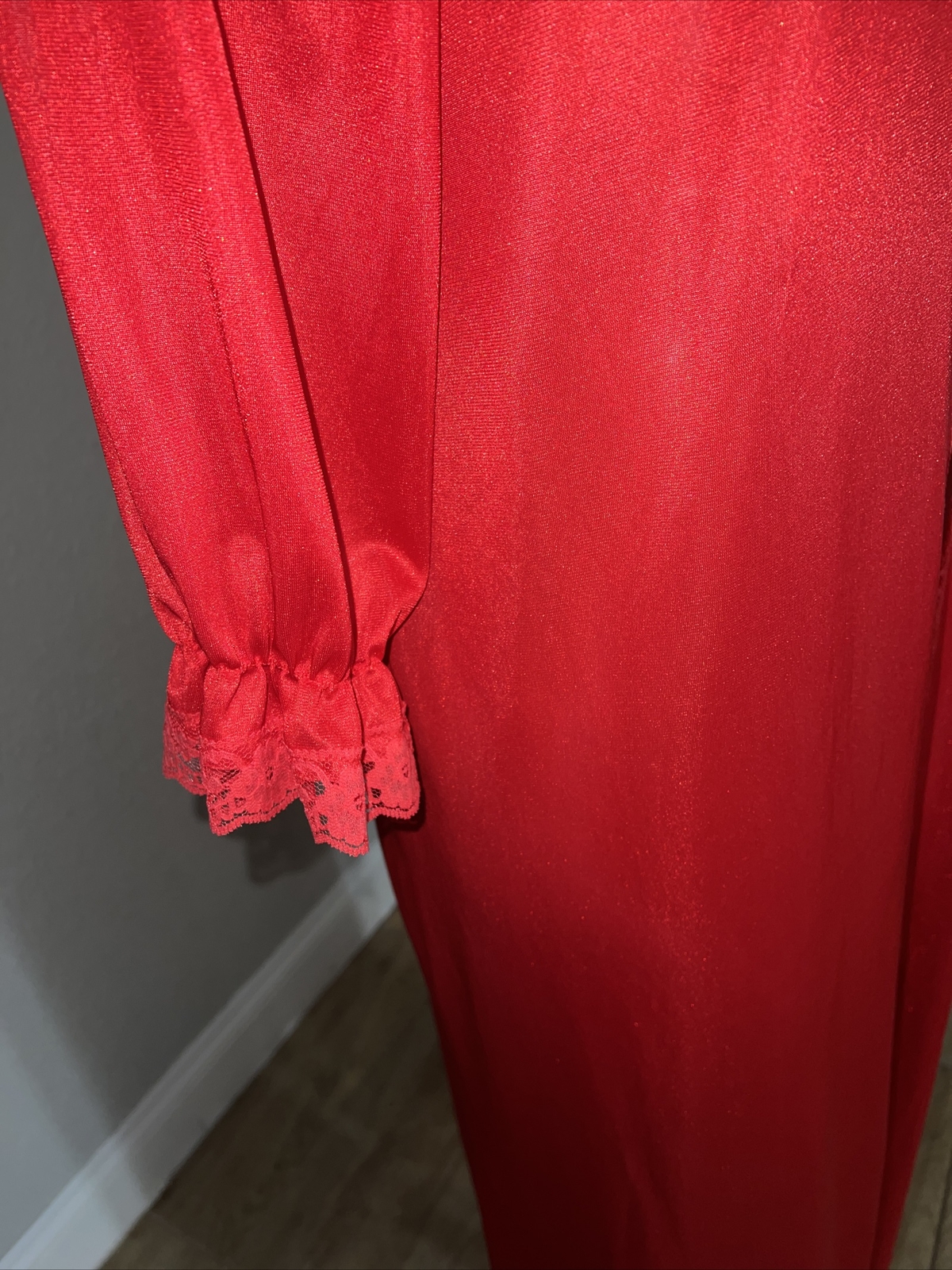 как выглядит Antique Style Red Gown Robe Peignoir Robe Ruffled Lace Trim Tie Top Sm cbh фото