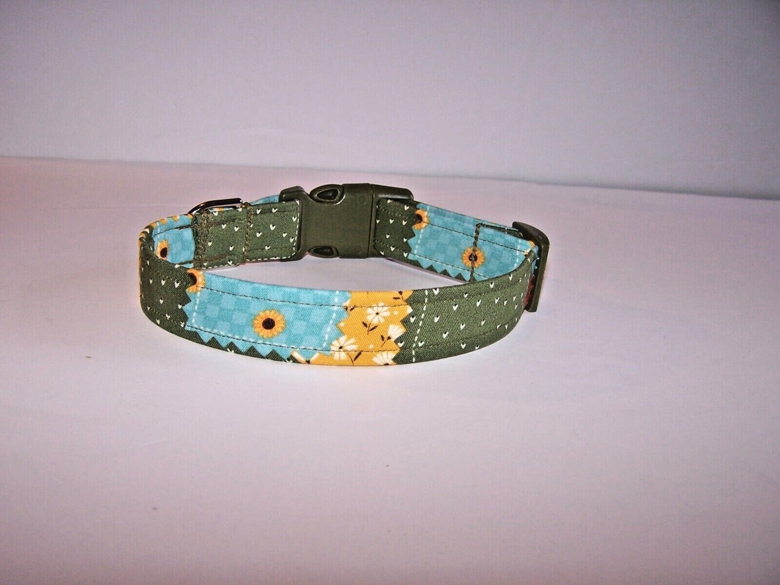 Wet Nose Designs Bright Sunflower Quilt Dog Collar Fall Harvest COLOR Buckle