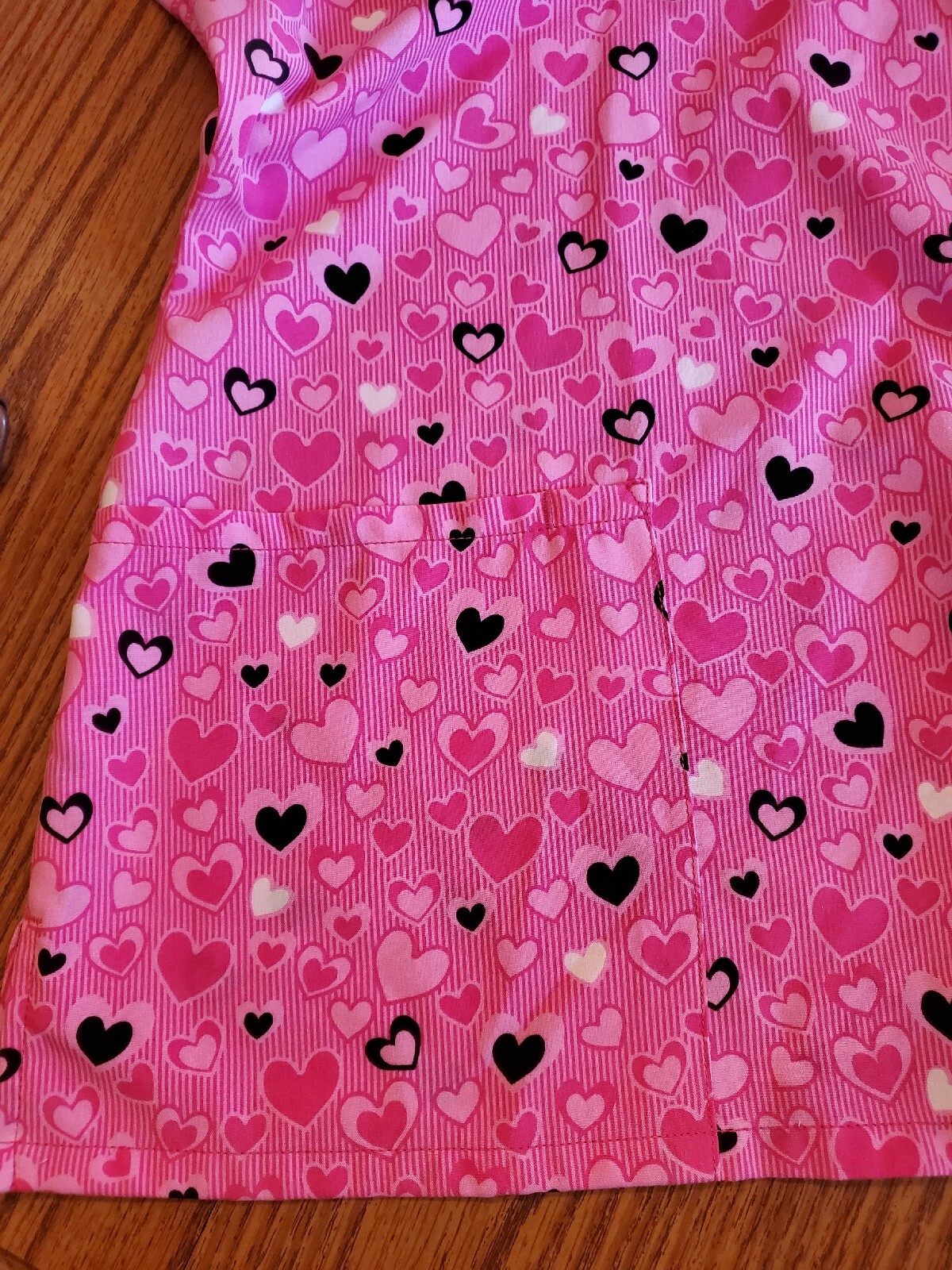 Cherokee Runway Hearts Scrub Top Lg EUC Pink