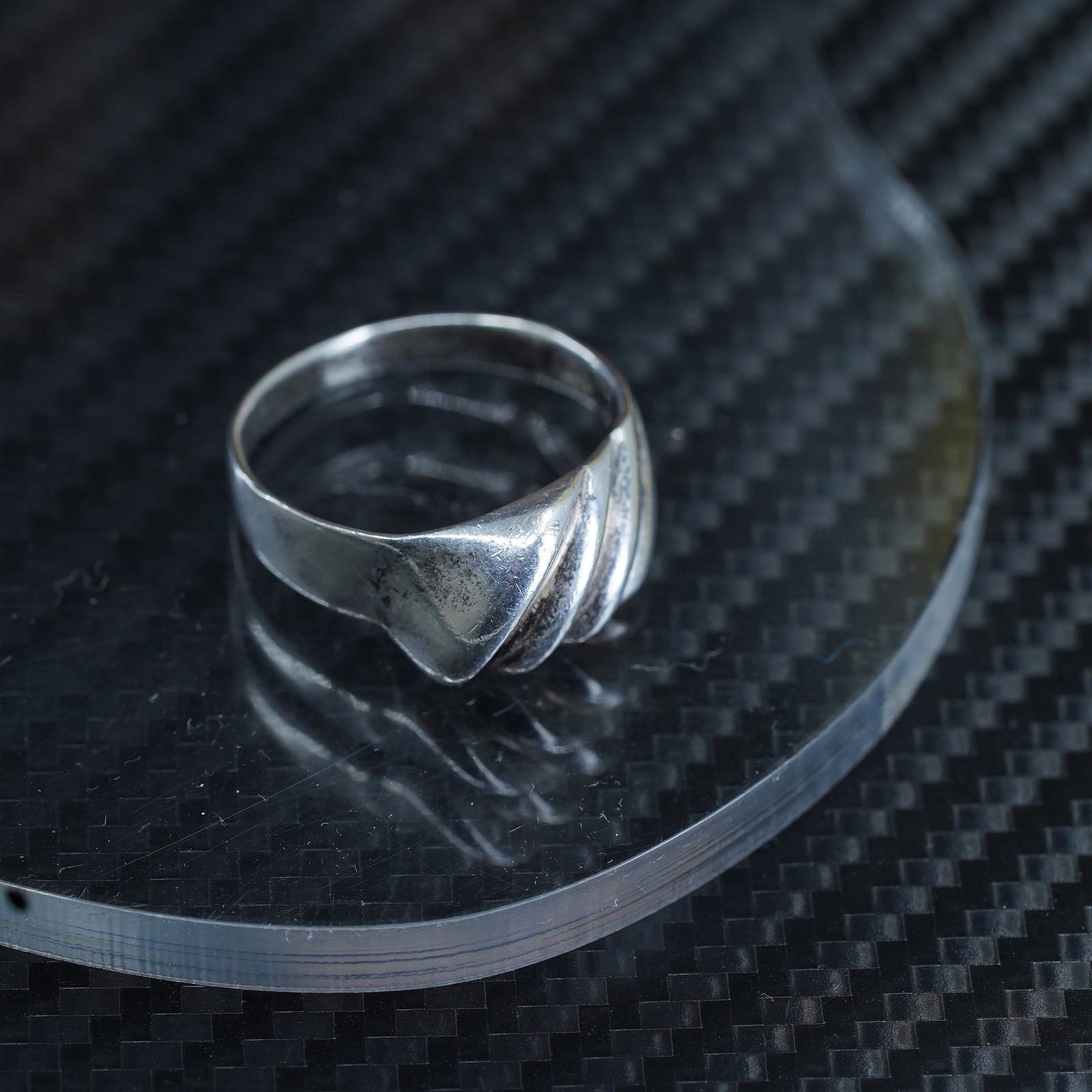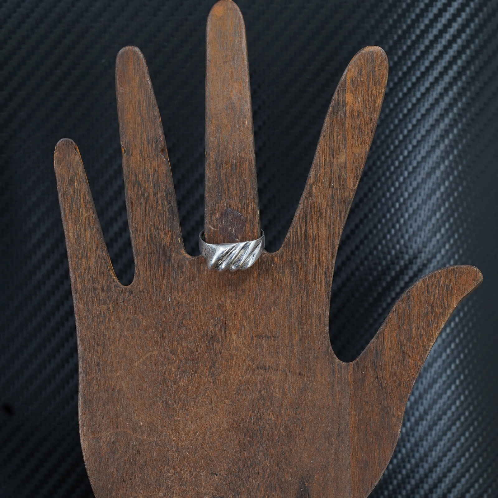 как выглядит size 8.25, vintage sterling silver 925 handmade wide ribbed band ring фото