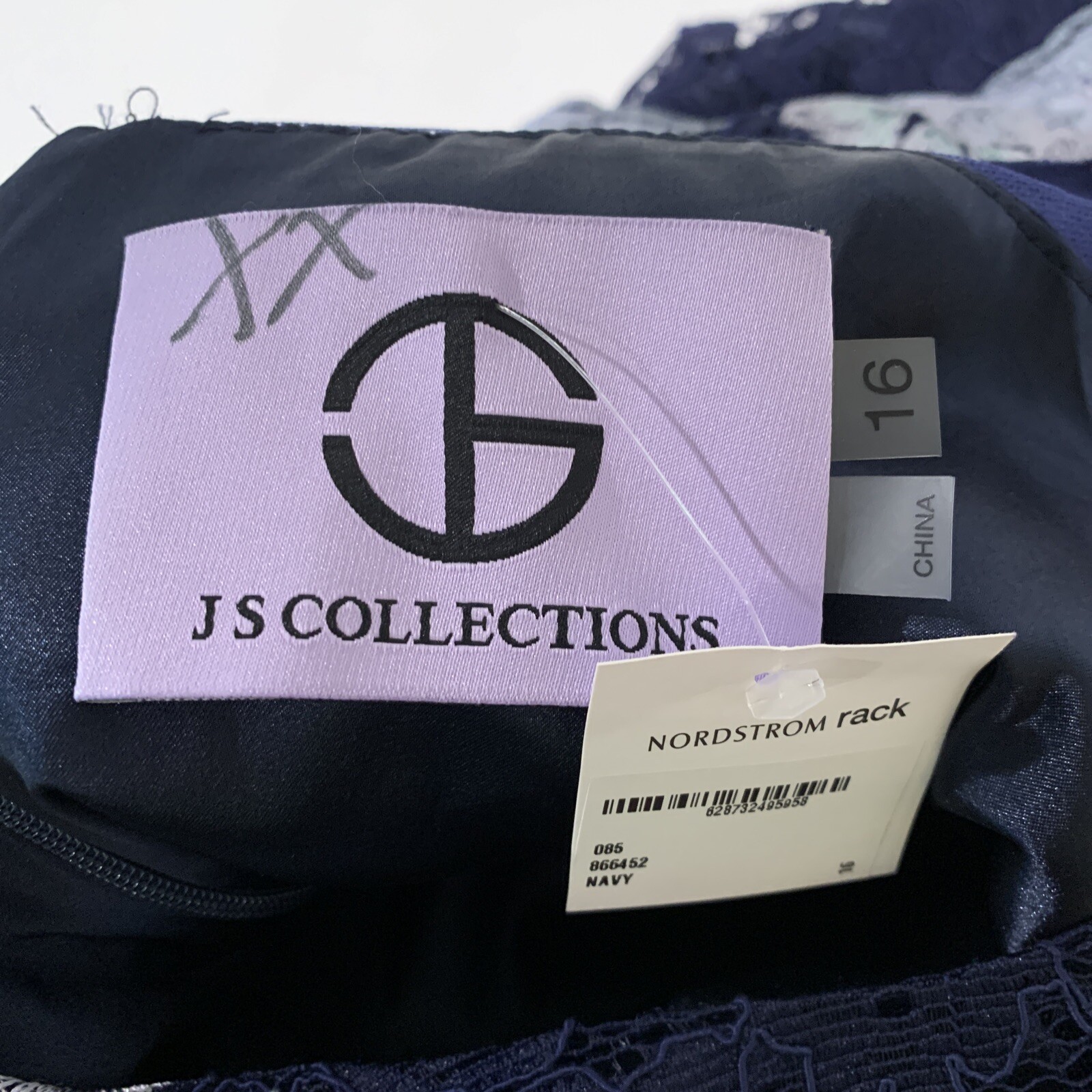 как выглядит JS Collections Women Size 16 Navy Blue Short Sleeve Lace Trumpet Dress фото