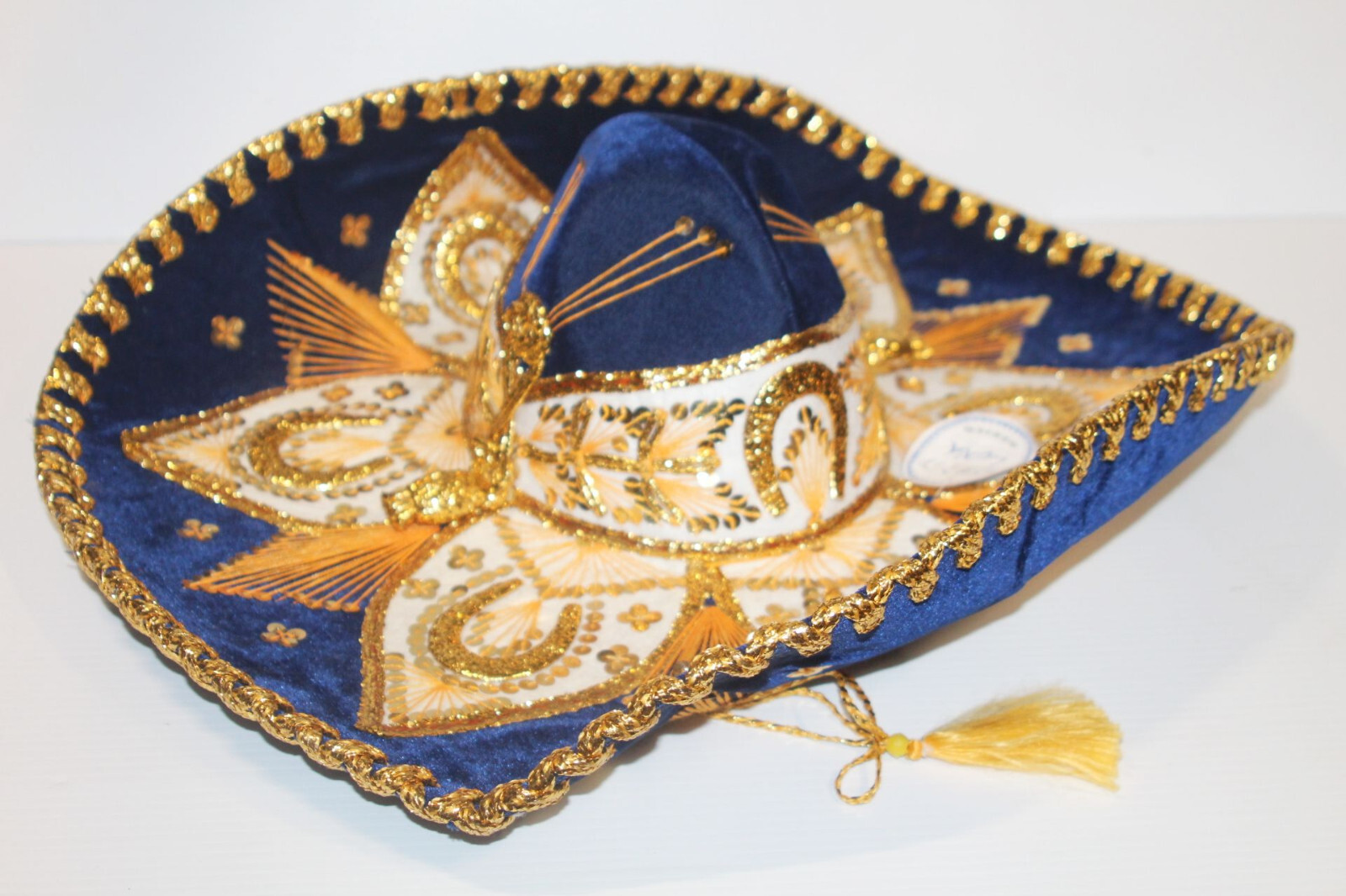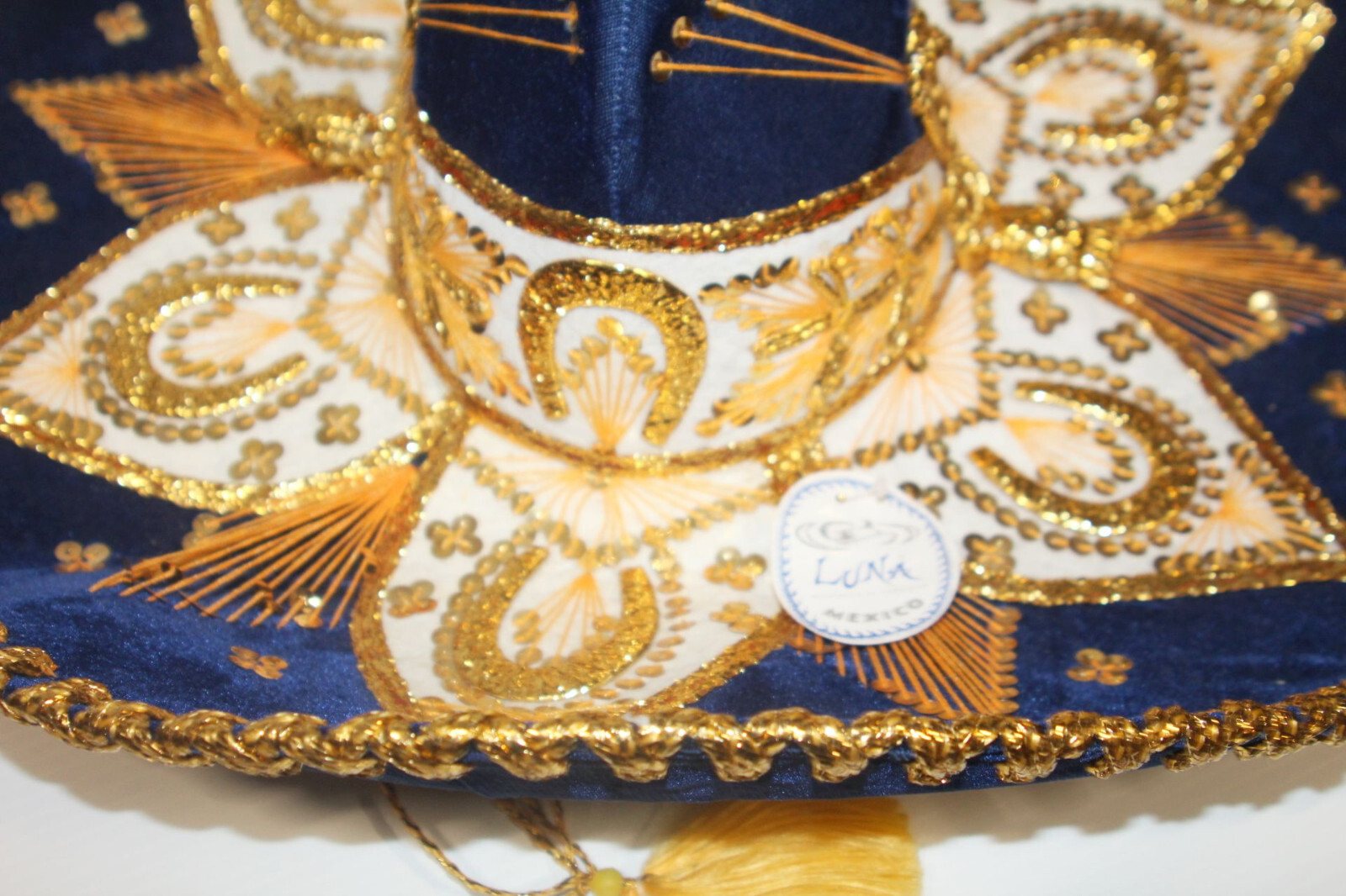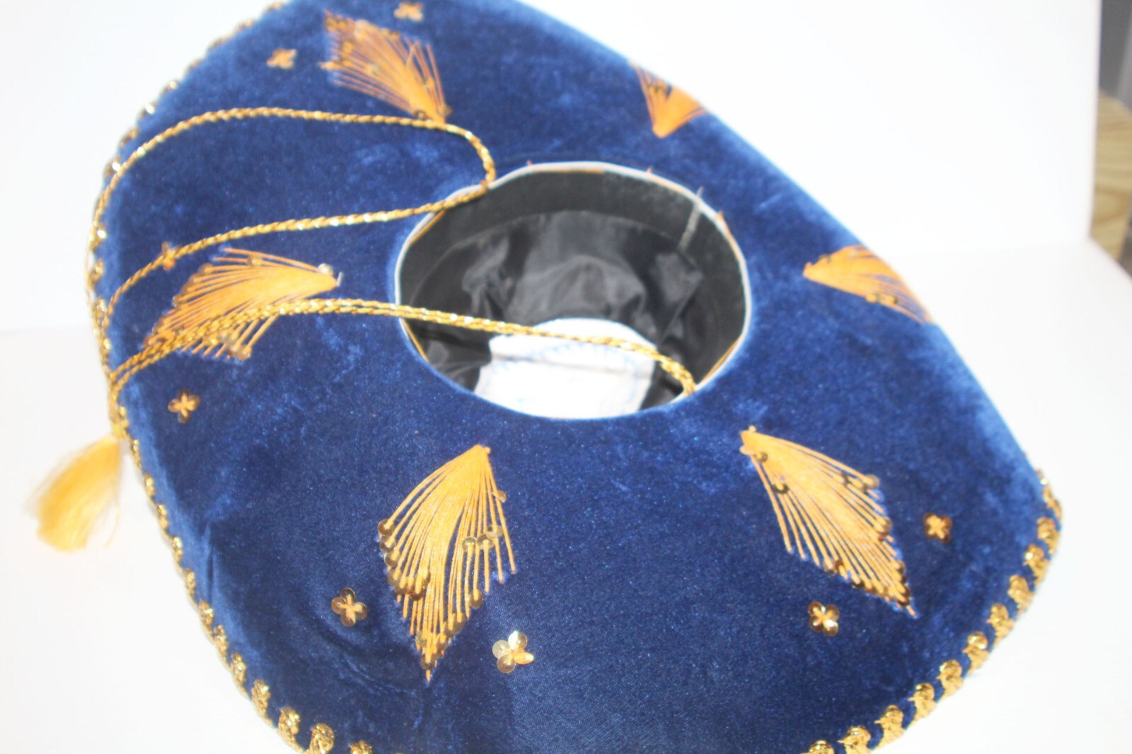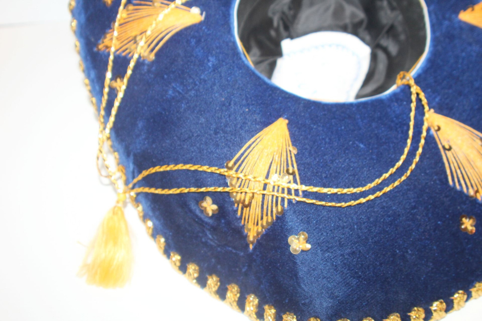как выглядит NWT - Vintage Mexican Luna Sombrero Mariachi Hat Blue Gold Mexico Sequins 22" фото