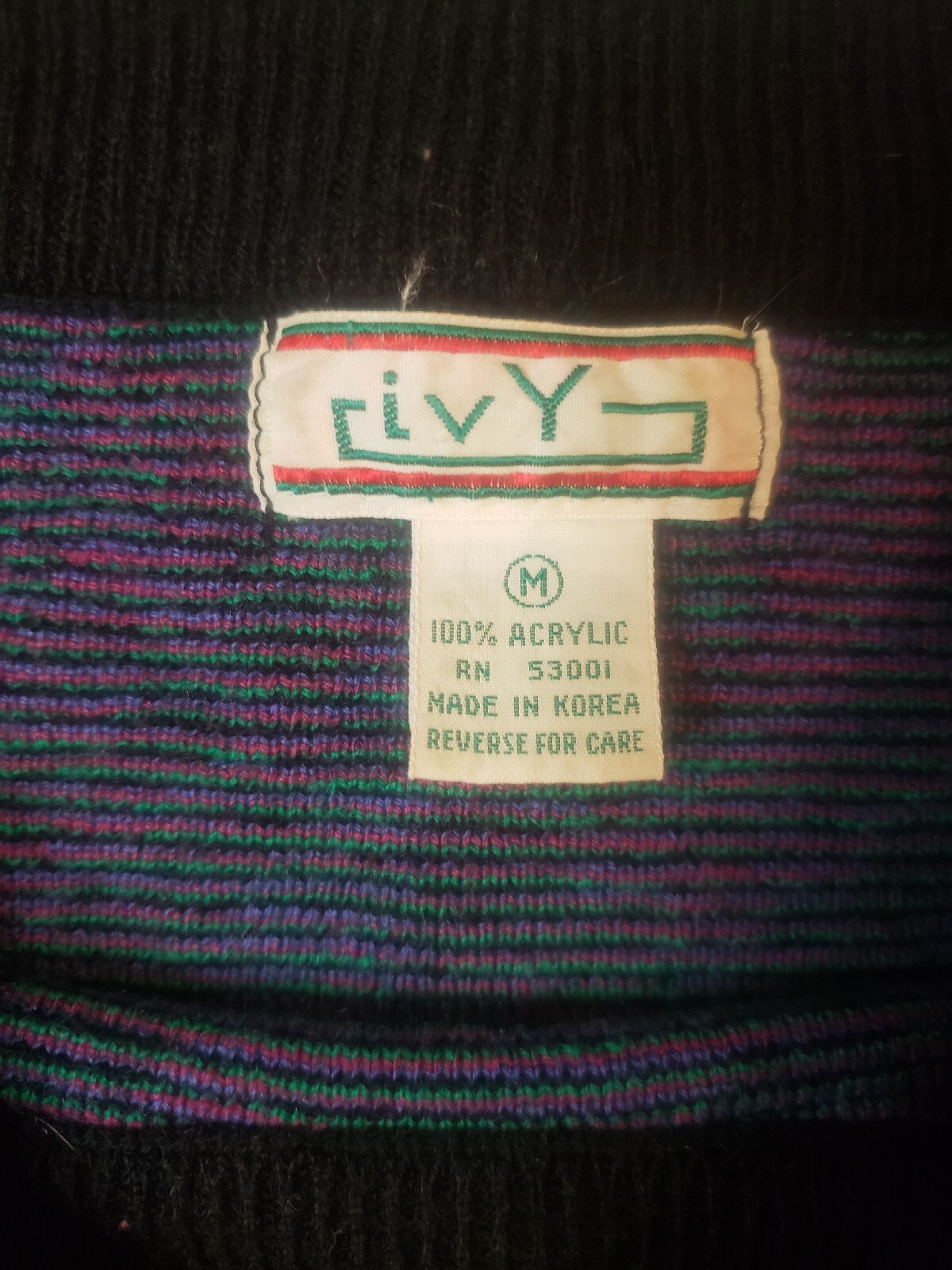 Vintage Rivy Sweater Womens Medium Multicolor Geometric Floral Acrylic Pocket