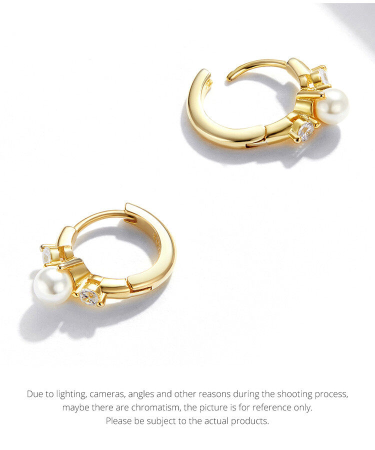 как выглядит Wostu 925 Sterling Silver Shell Pearl Zircon Pearl Gold Earrings For Women Girls фото