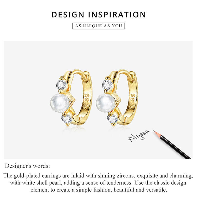 Wostu 925 Sterling Silver Shell Pearl Zircon Pearl Gold Earrings For Women Girls
