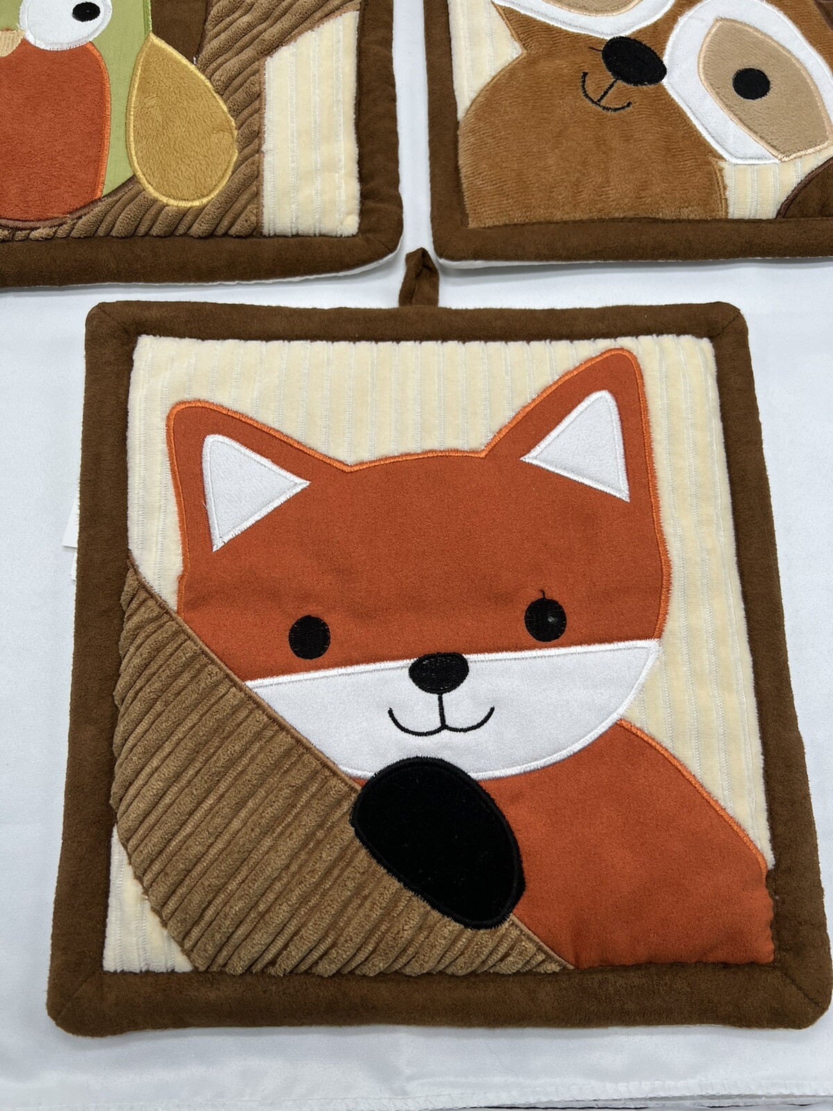 Lambs Ivy Fox Owl Raccoon Animal Wall Hanging Quilt Fabric Applique Kids Baby