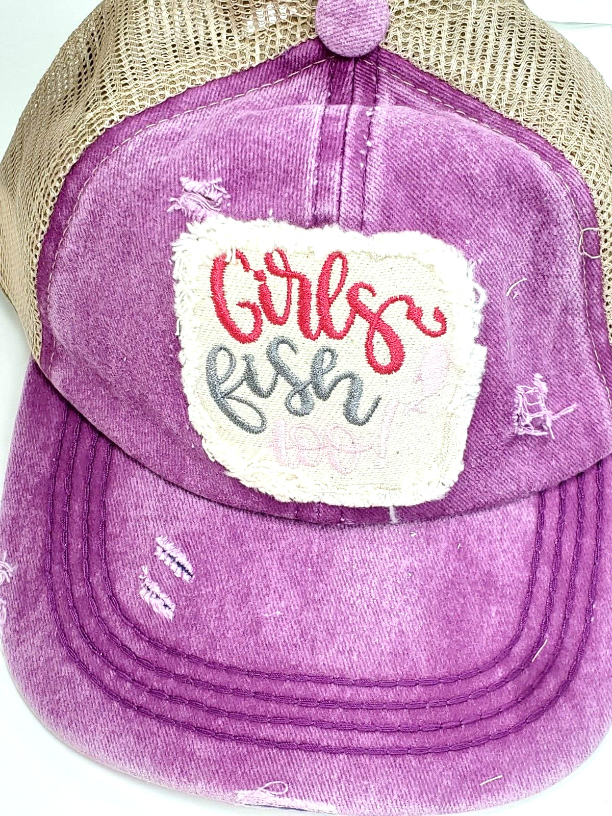 C.C Kids PonyCaps Girls Baseball Cap GIRLS FISH TOO Cap, Grape Adjustable Cap