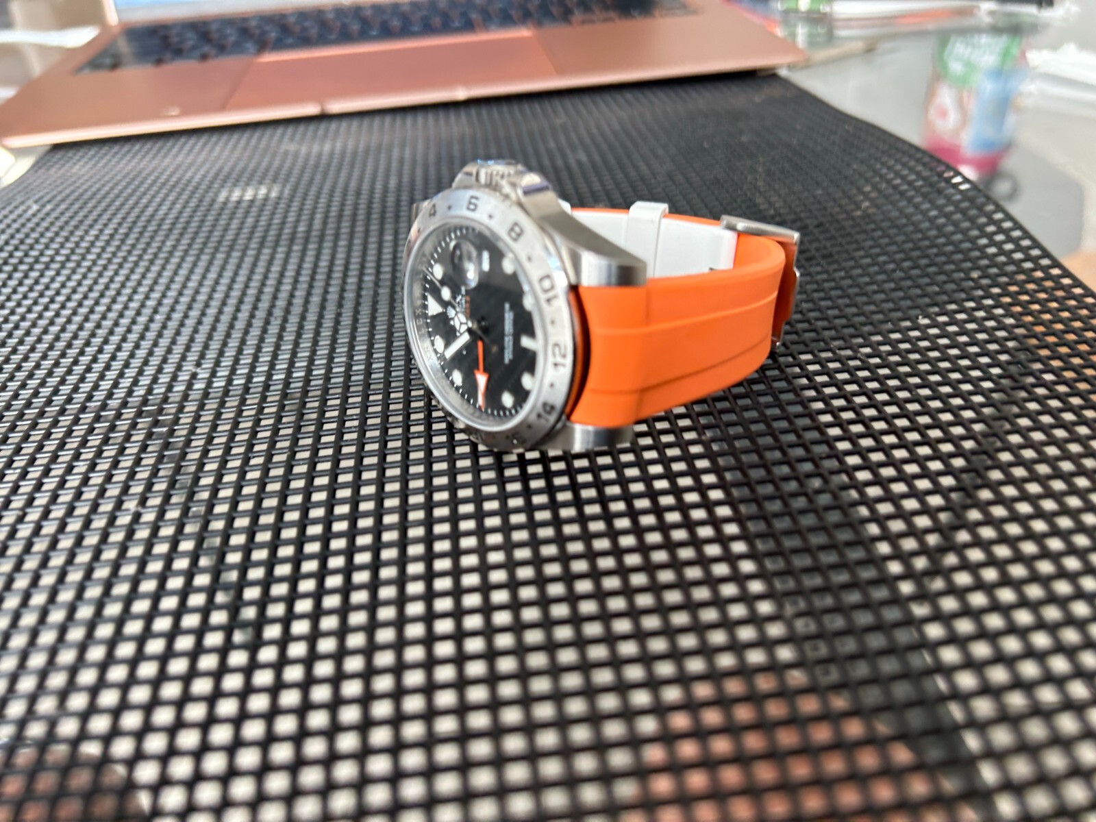21mm WHITE/ORANGE Vulcanized Caoutchouc rubber Strap Rolex Explorer II