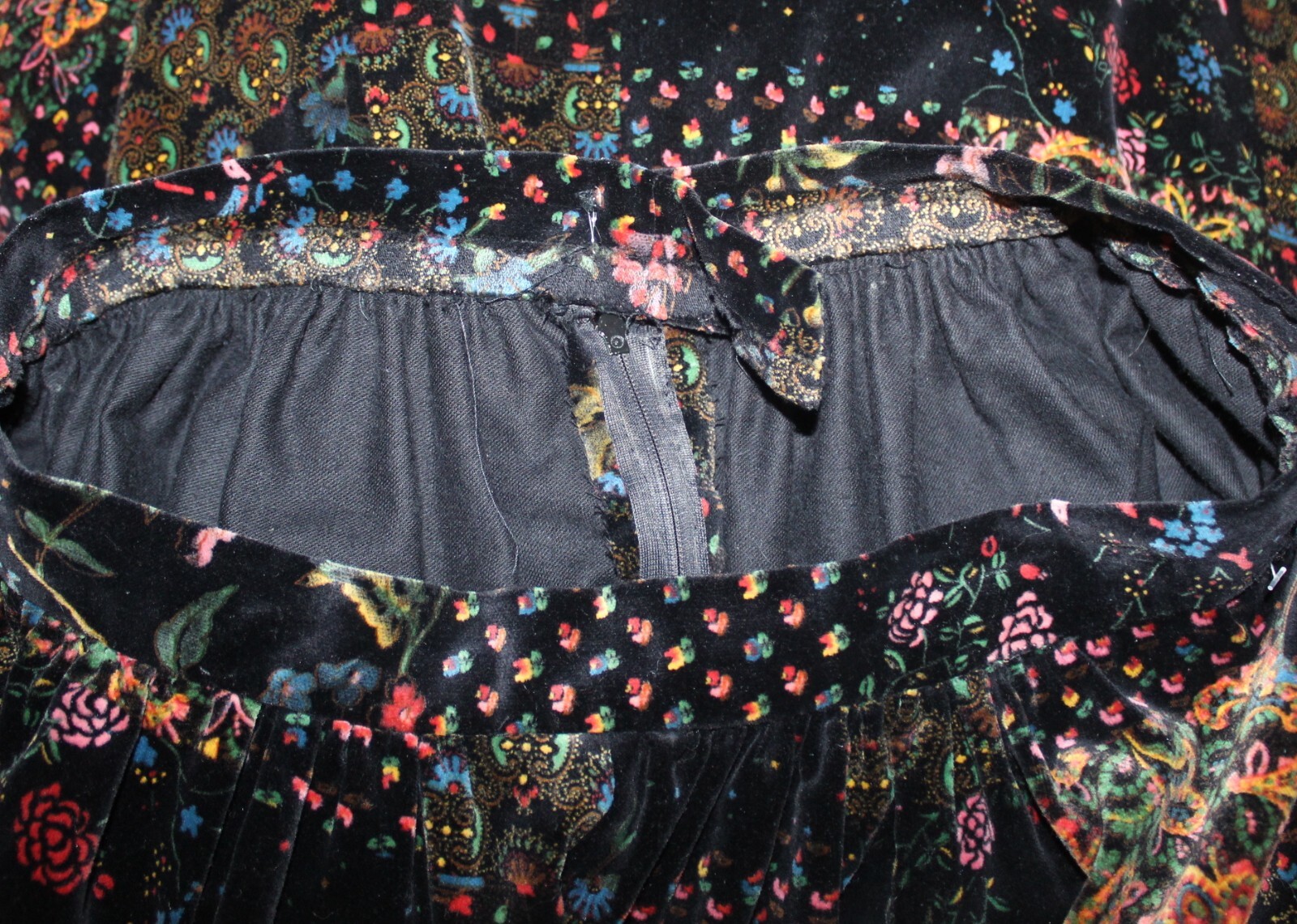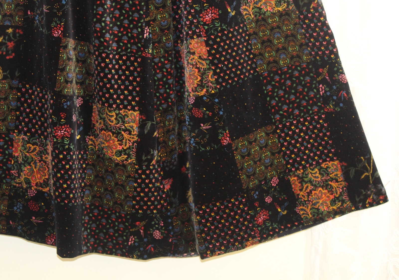 как выглядит Estate Vintage Hand-Made Velvet Patchwork 28" Waist M 8 10 Long Gypsy Skirt фото