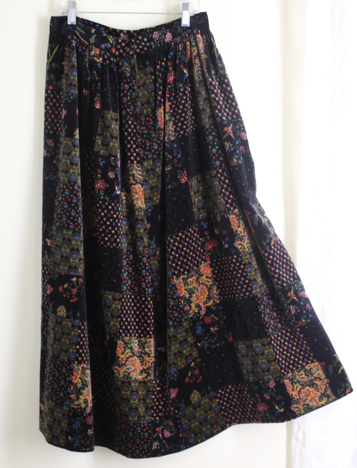 Estate Vintage Hand-Made Velvet Patchwork 28 Waist M 8 10 Long Gypsy Skirt