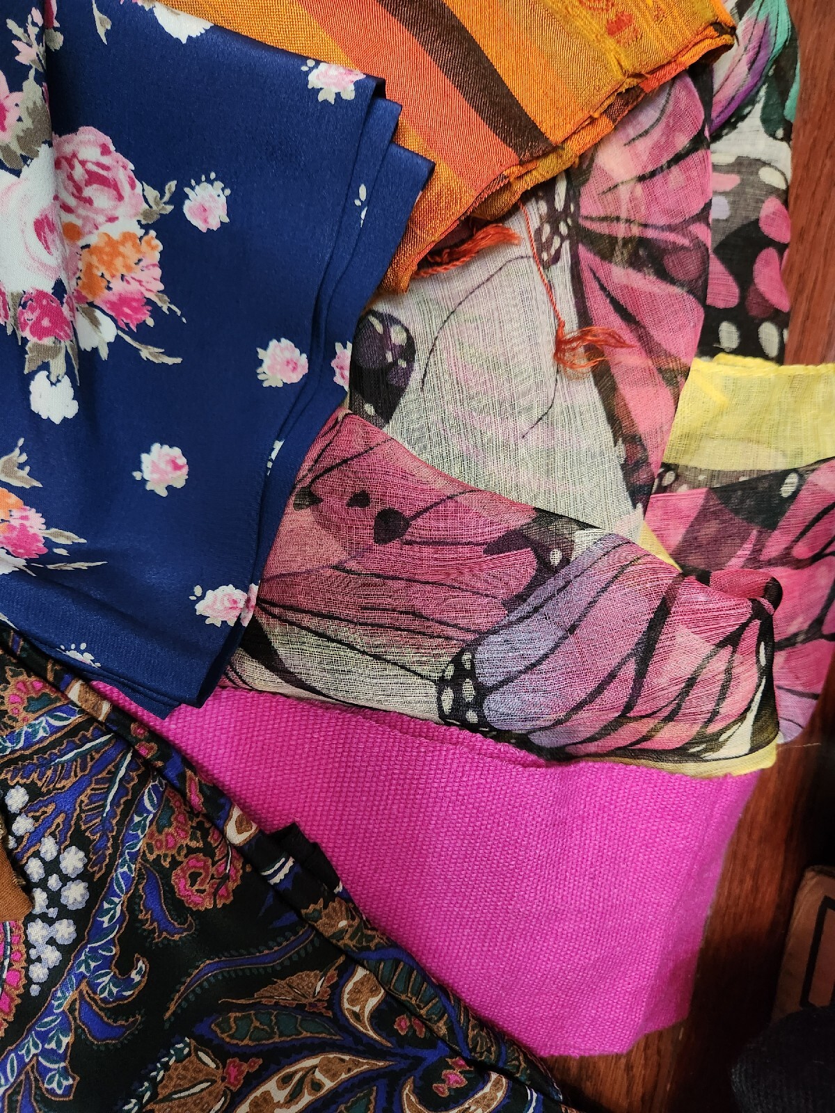 Vintage Lot of 9 Women's Head Neck Scarves Various Material Sizes.