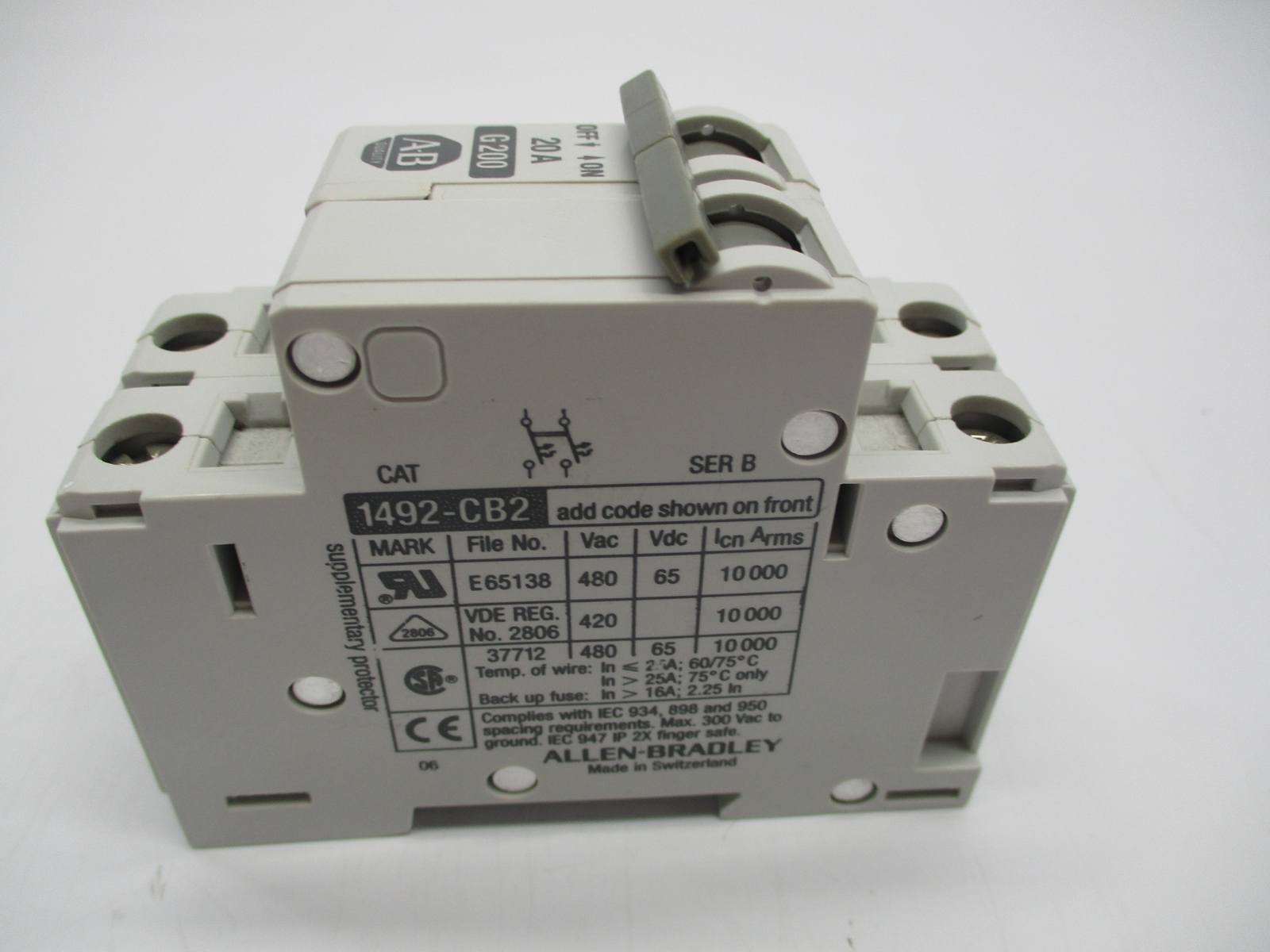 ALLEN BRADLEY 1492-CB2G200 CIRCUIT BREAKER 2POLE 20AMP NSMP
