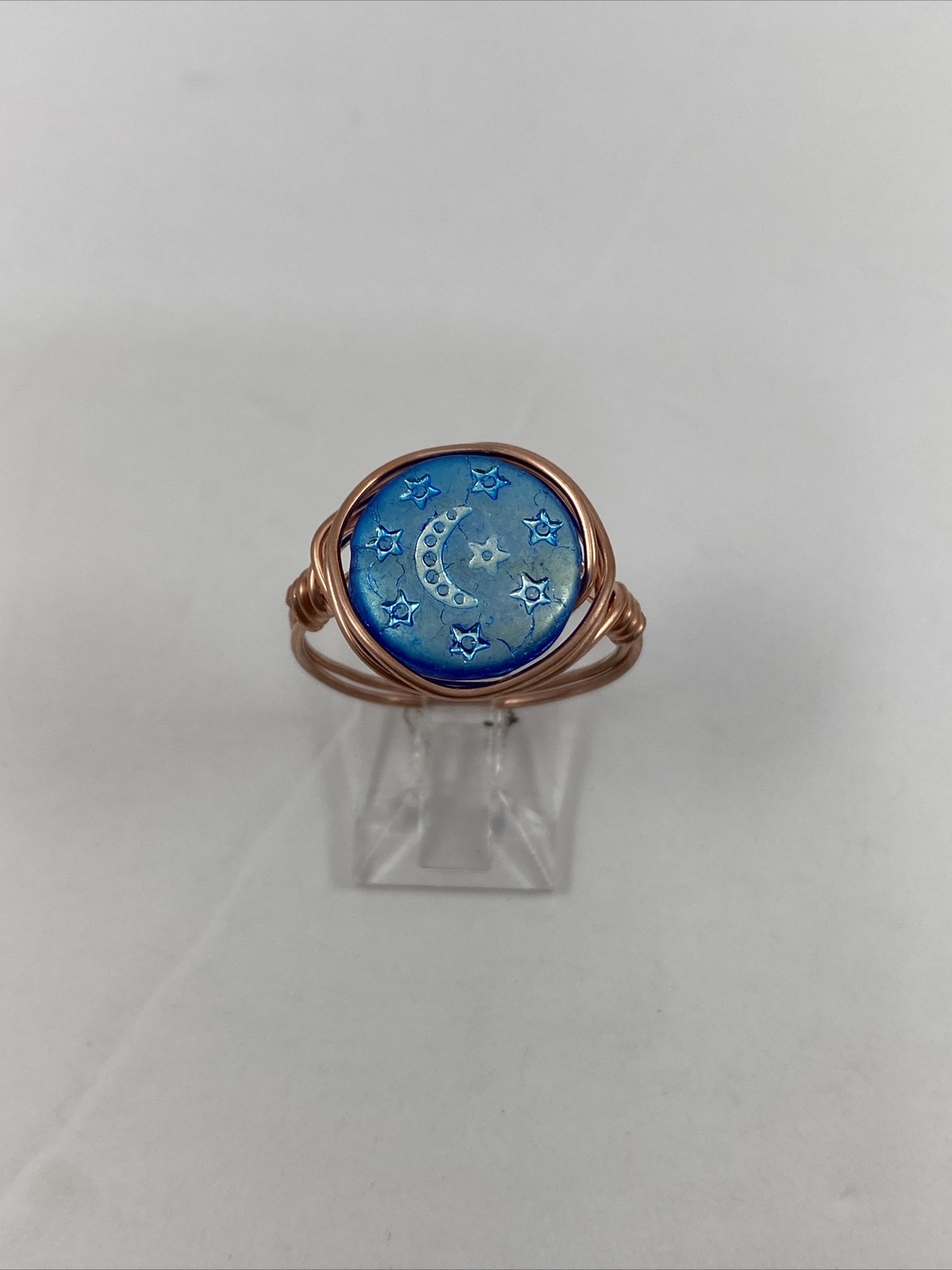 как выглядит Handmade Copper Wire Wrap Glass Bead Ring Size 9 1/2 128 фото