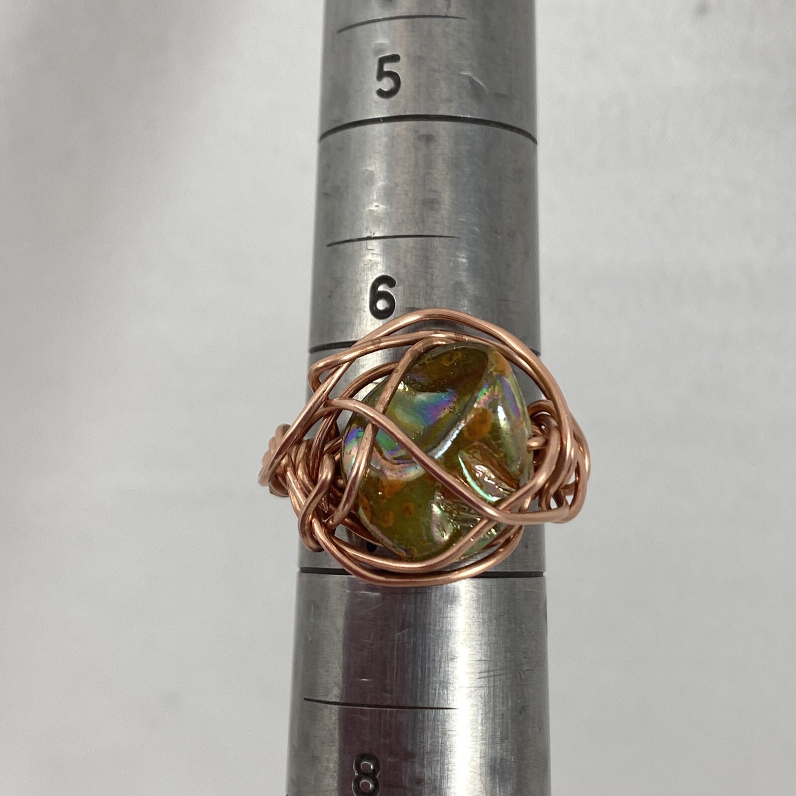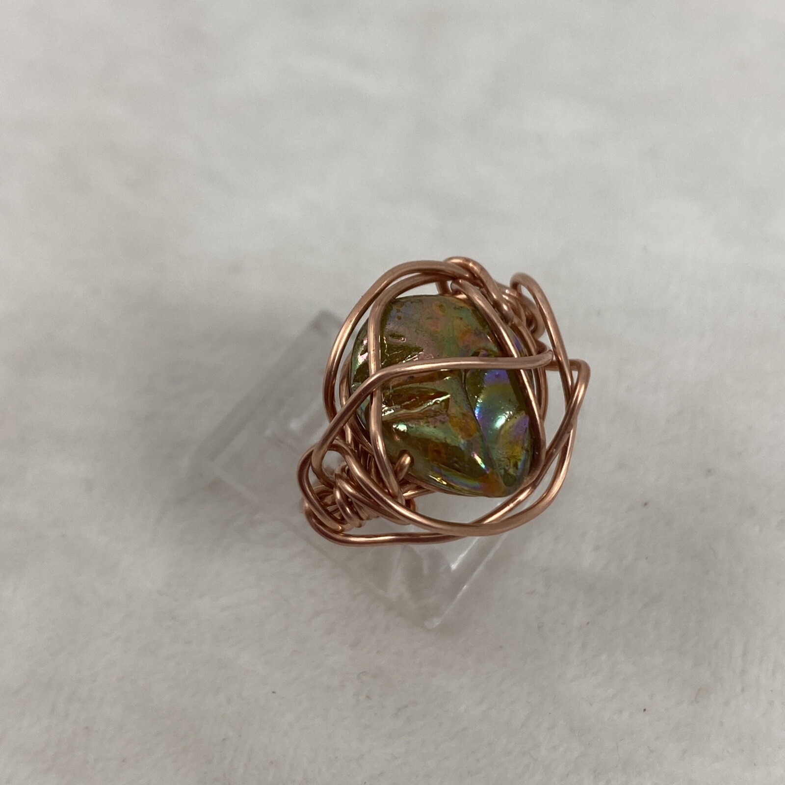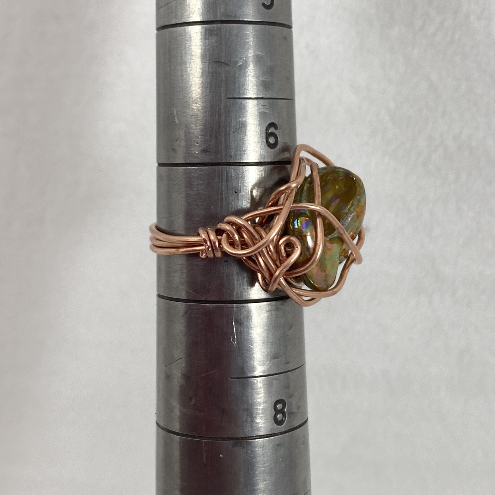 Handmade Copper Wire Wrap Picasso Mother of Pearl Pearl Ring Size 6 1/2 312