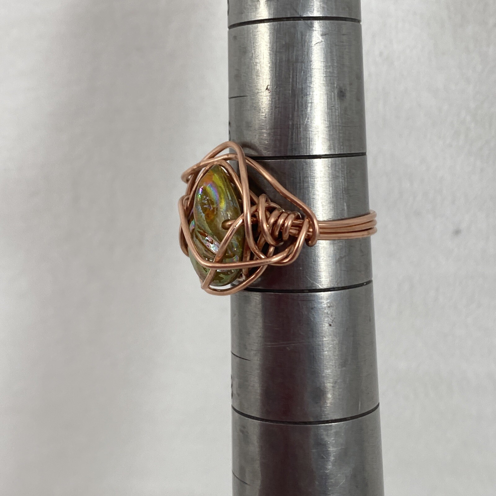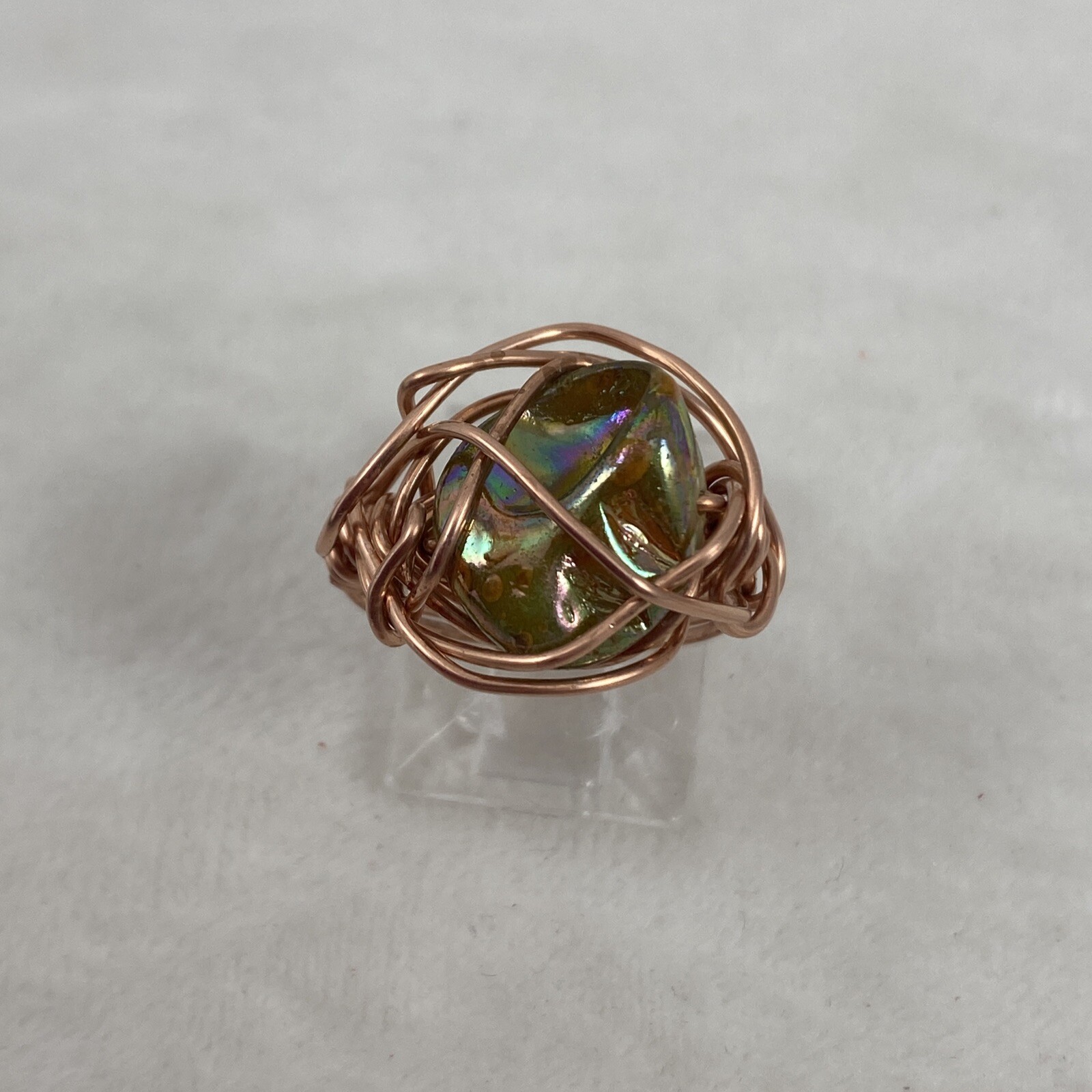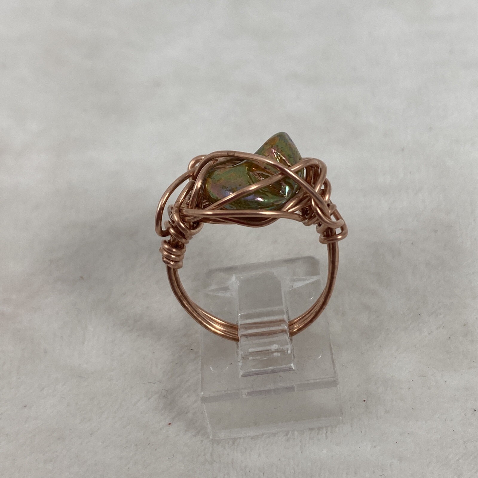 Handmade Copper Wire Wrap Picasso Mother of Pearl Pearl Ring Size 6 1/2 312