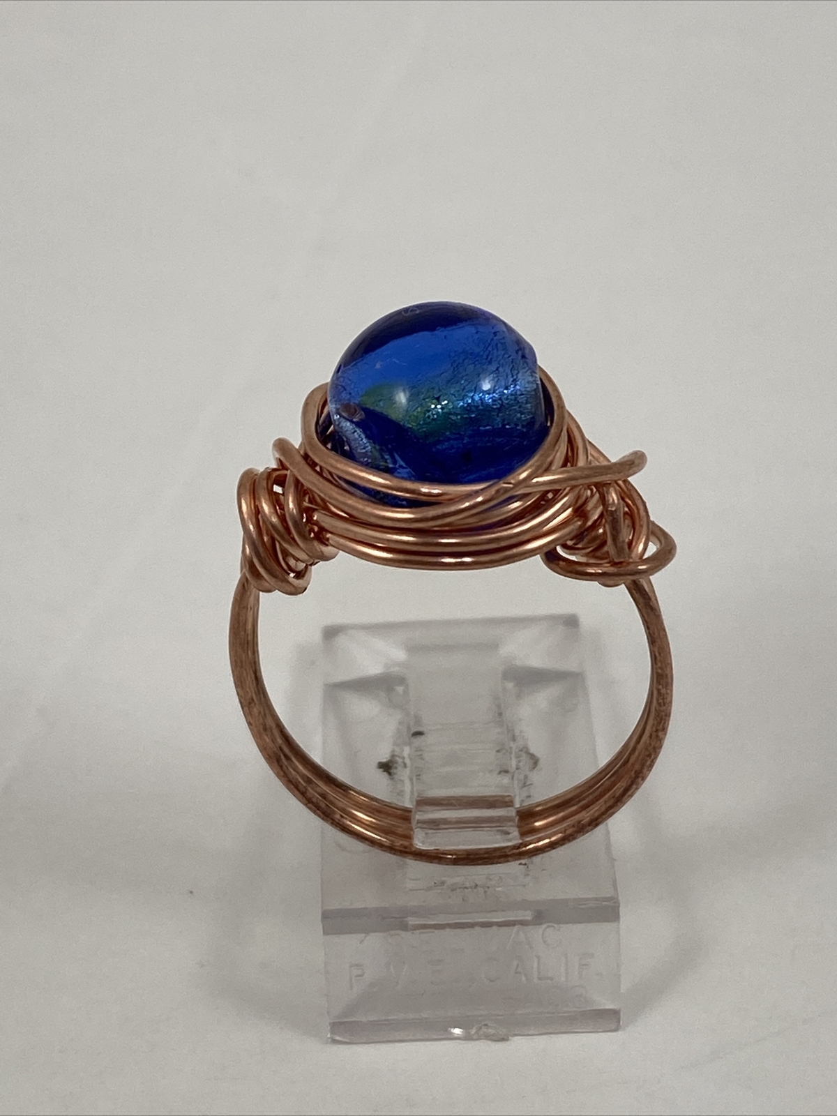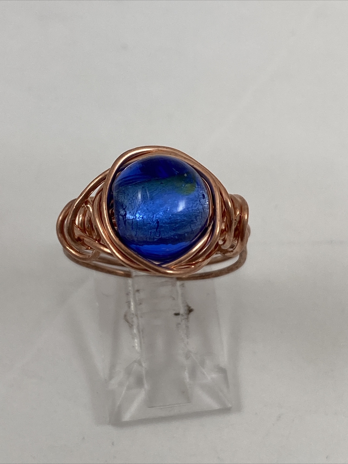 Handmade Copper Wire Wrap Glass Bead Ring Size 7 94