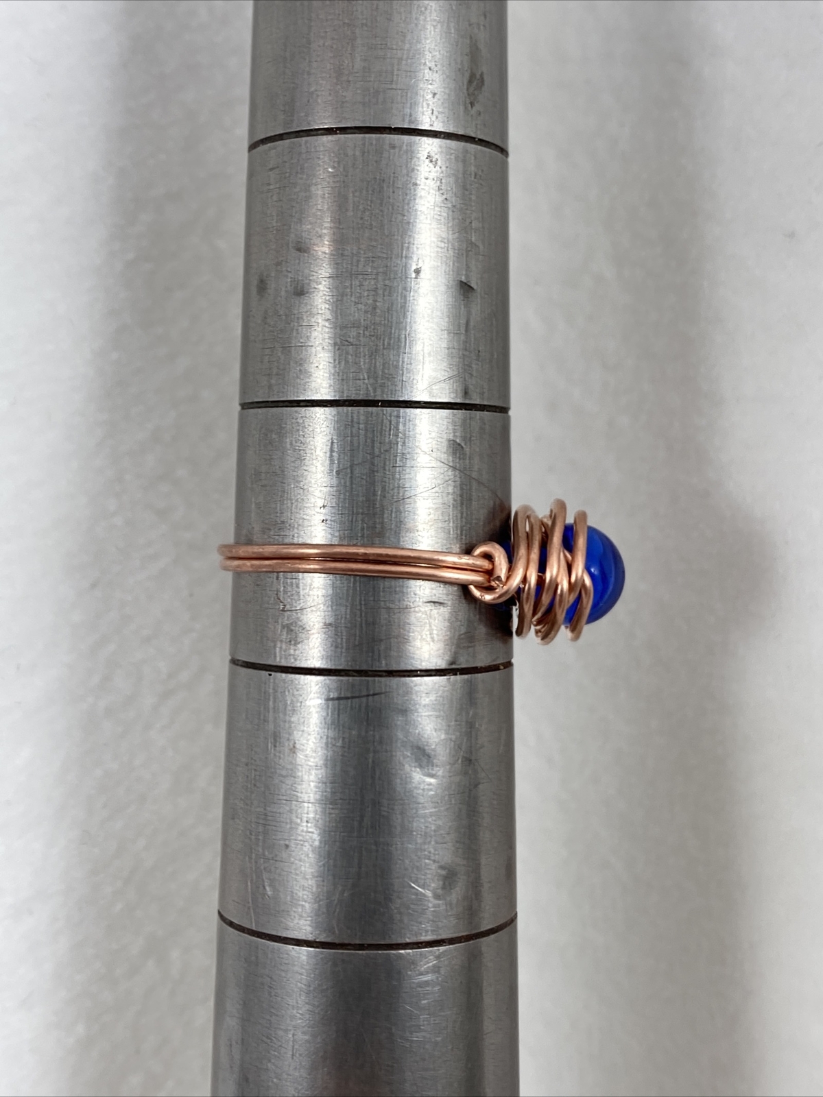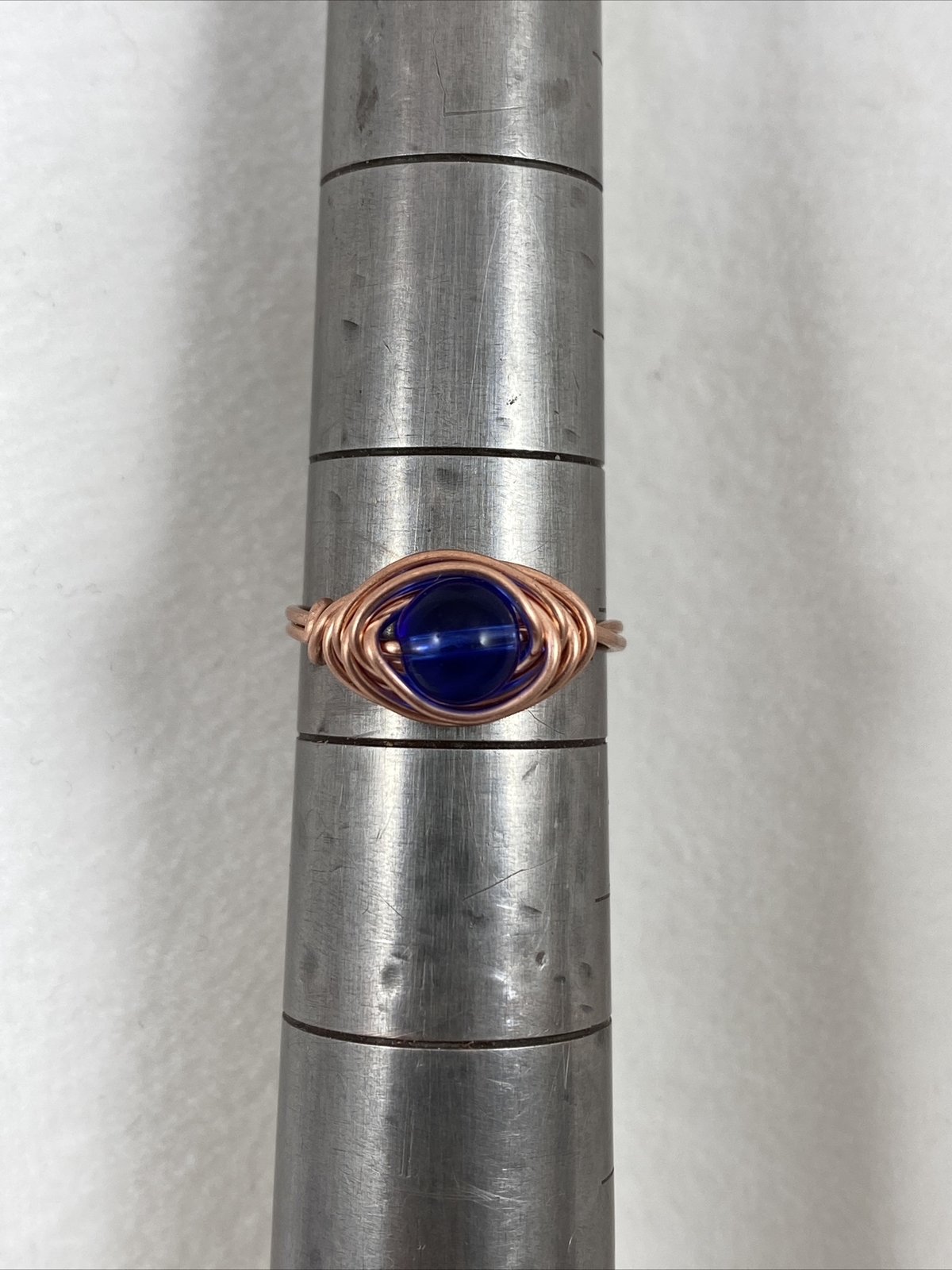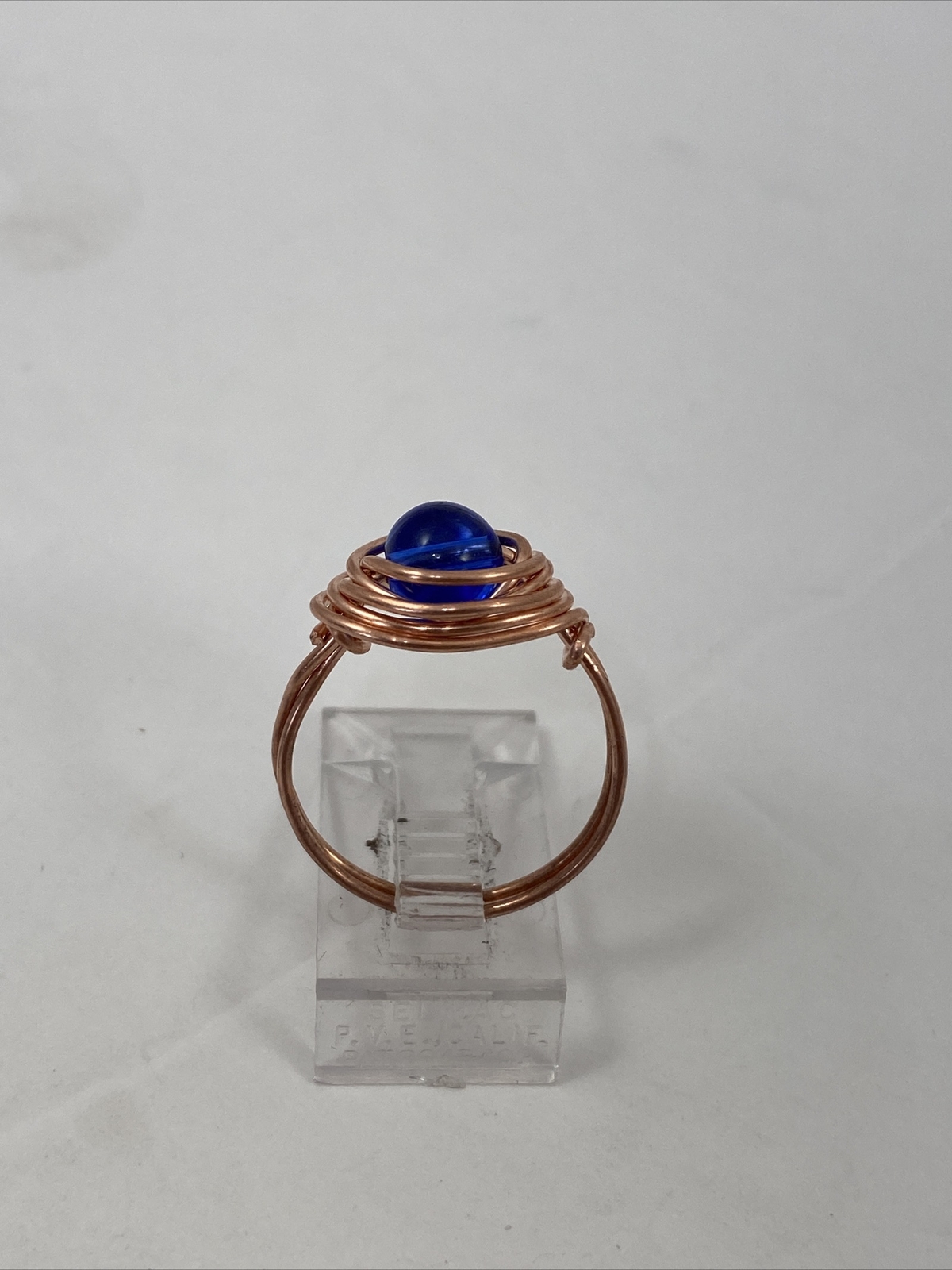 Handmade Copper Wire Wrap Glass Bead Ring Size 6 1/2 114