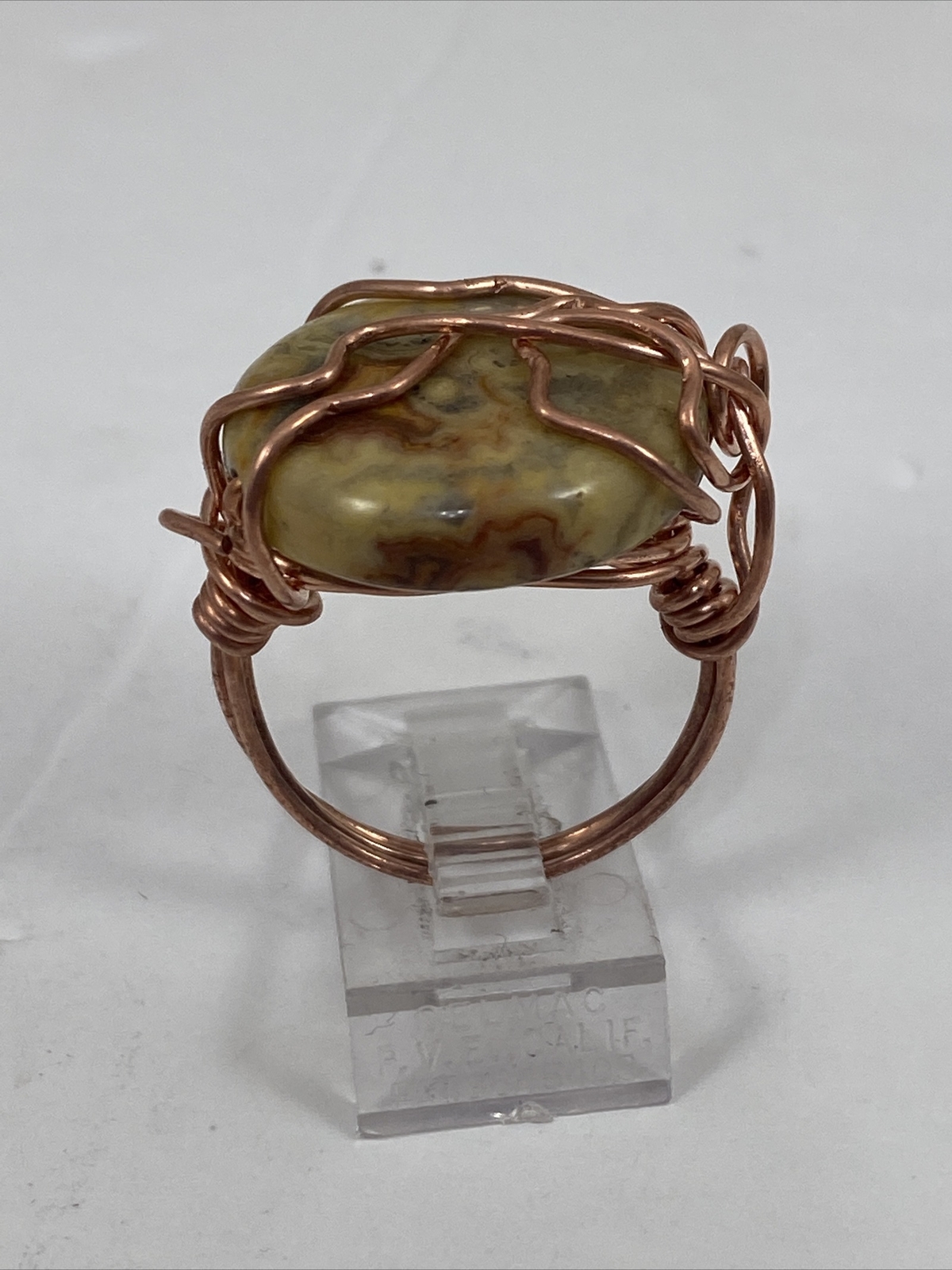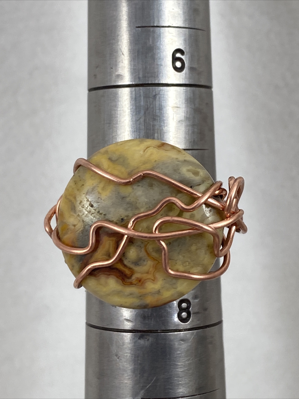 Handmade Copper Wire Wrap Coral Bead Ring Size 8 174