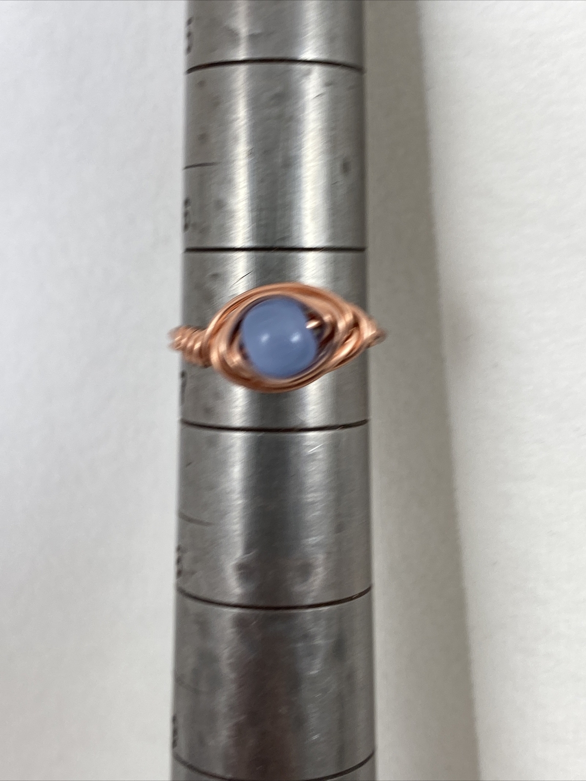 Handmade Copper Wire Wrap Glass Bead Ring Size 6 1/2 115