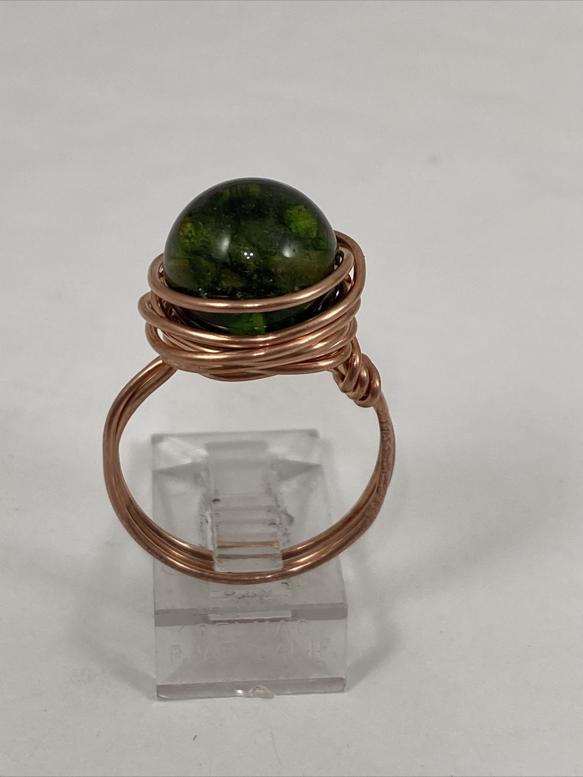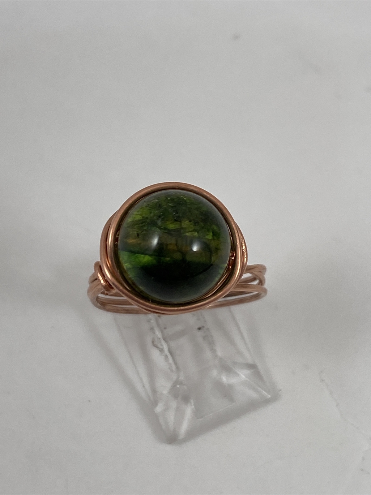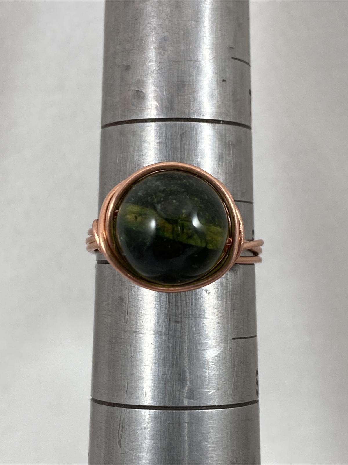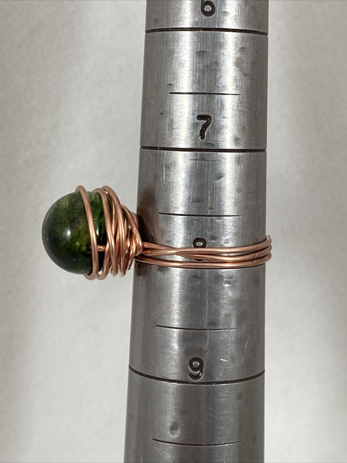 Handmade Copper Wire Wrap Green Glass Bead Ring Size 8 136