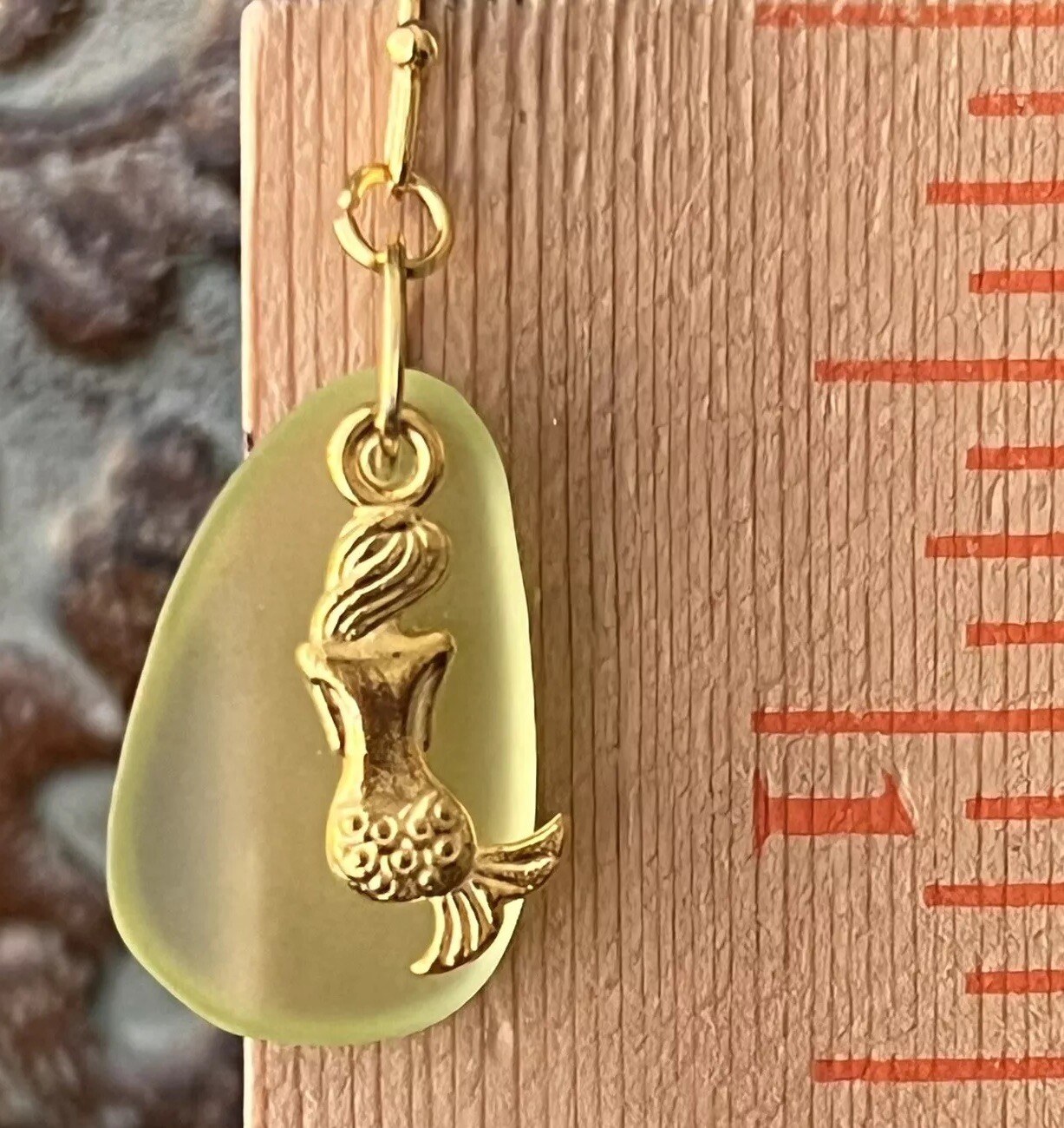 как выглядит Gold Mermaid and Ocean Green Earrings. Faux Beach Glass. Coast. фото
