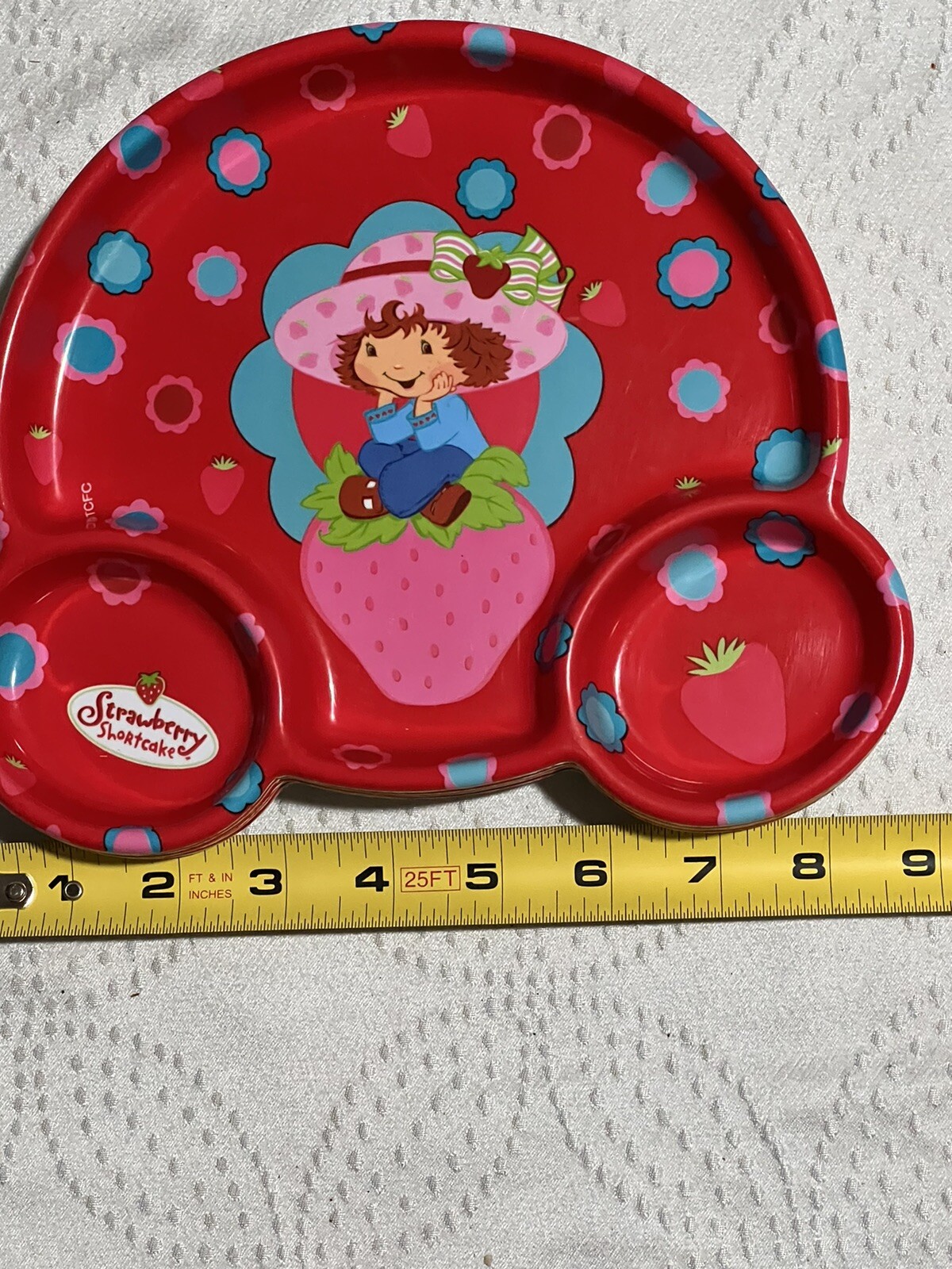 как выглядит Vintage Strawberry Shortcake Plastic Dishes 5 Plates- 3 Compartments - Red фото