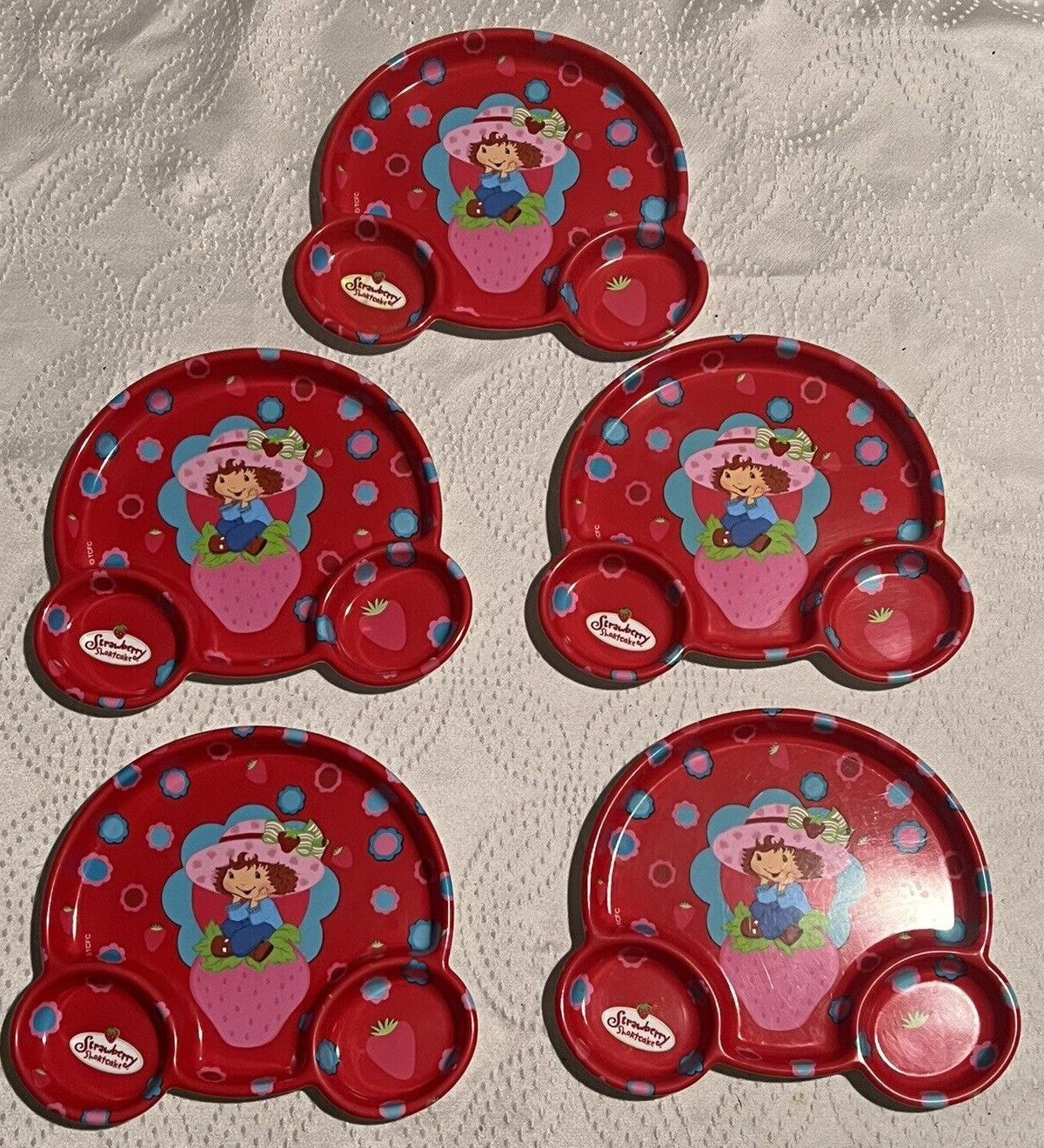 Vintage Strawberry Shortcake Plastic Dishes 5 Plates- 3 Compartments - Red