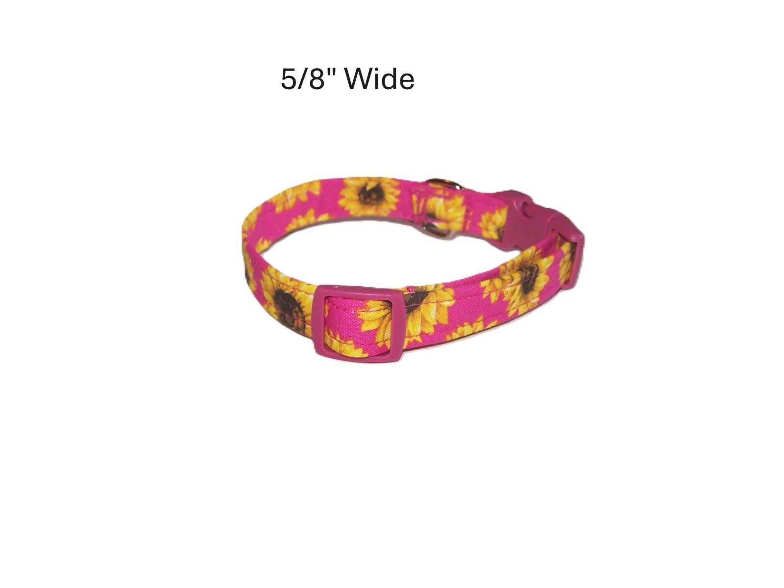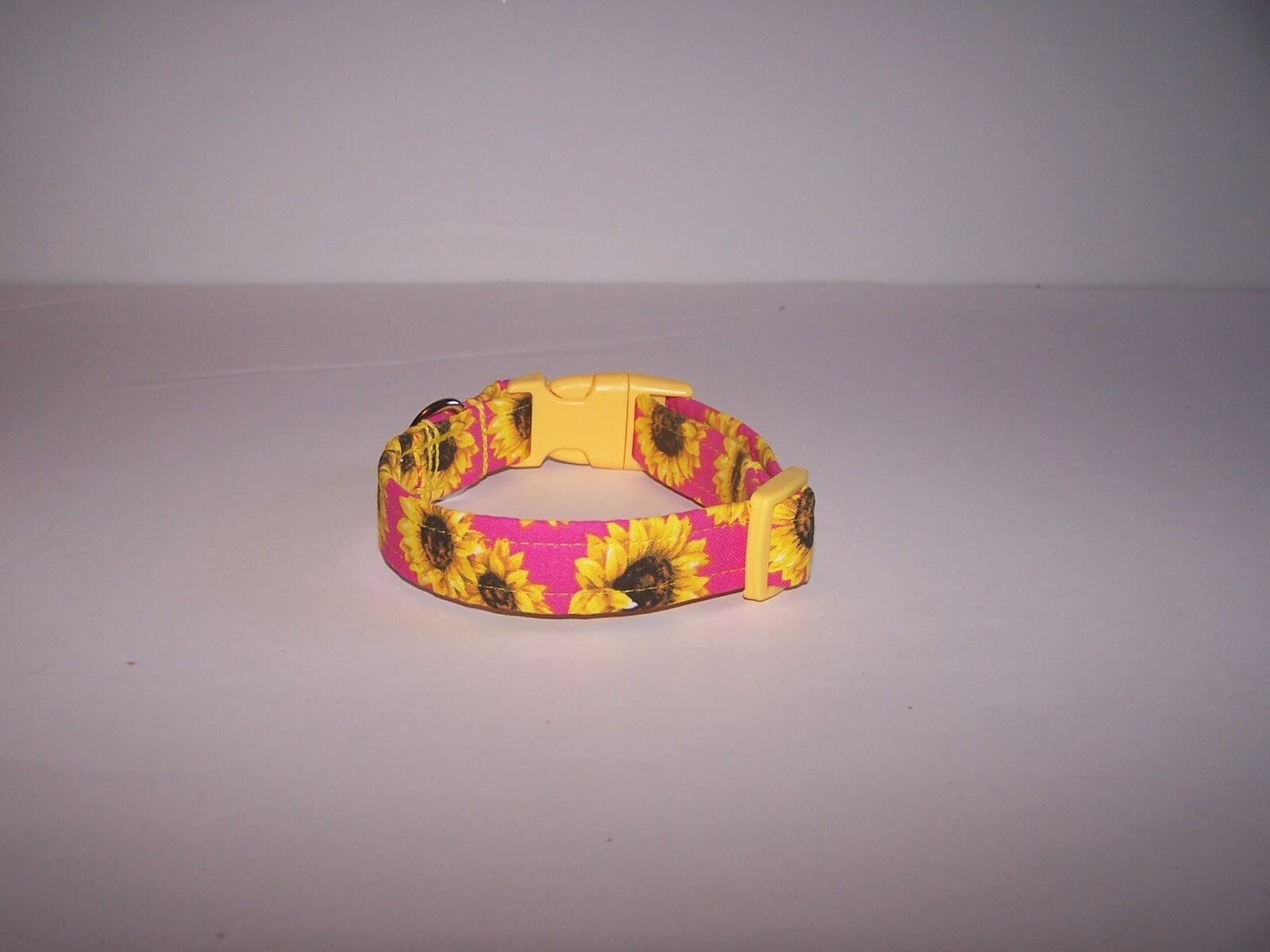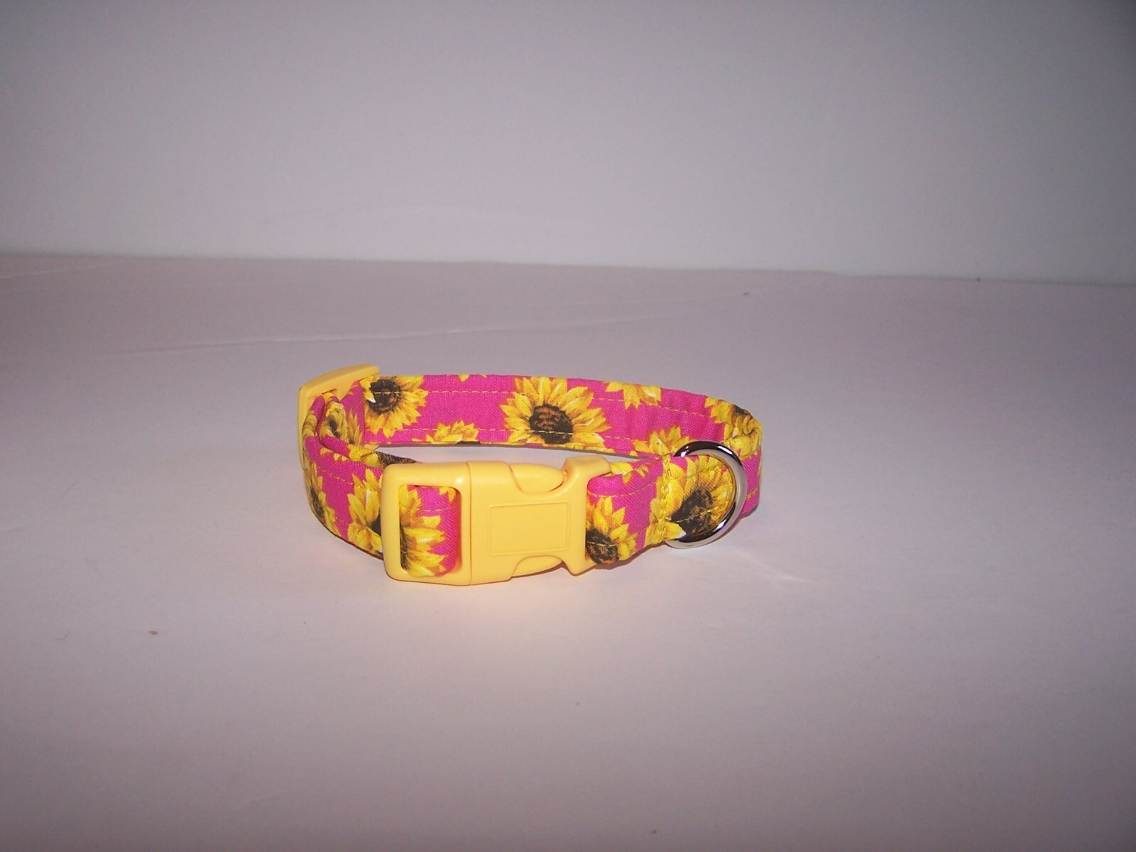 Wet Nose Designs Sunflower Season Dog Collar Bright Pink Fall Colored Buckle