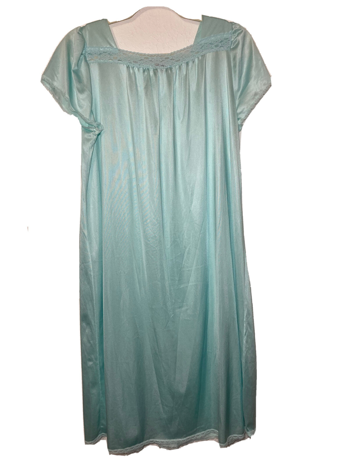 Vntg Vanity Fair Nightgown Mid Length Cap Sleeve Womens M Aqua Lace EUC